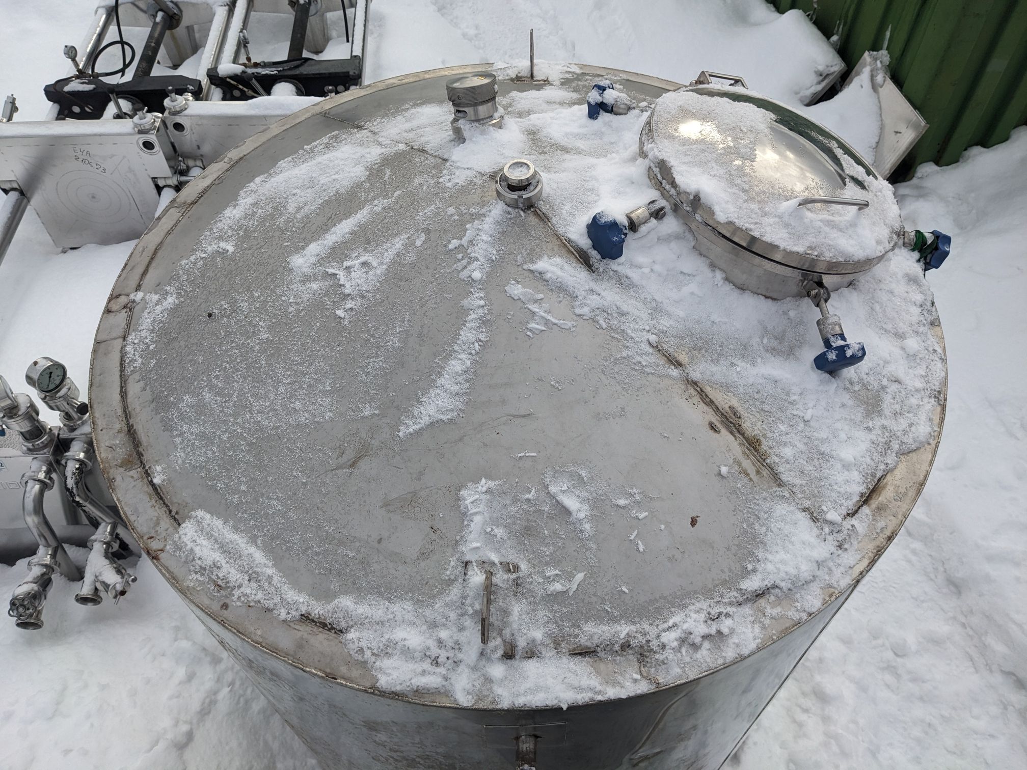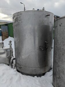 Емкость нержавеющая, объем 1,7 куб.м., вертикального исполнения, теплообменная рубашка для нагрева или охлаждения продукта, термоизоляция. При необходимости можем установить перемешивающее устройство. Размеры — 1,5 м высота цилиндрической части внутри, 1,27 м внутренний диаметр, 1,4 м наружный диаметр, 2,15 м общая высота. Инв 2876.