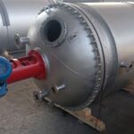 !!! Данная позиция зарезервирована !!! Реактор нержавеющий (варочный котел), объем 4 куб.м., рубашка, мешалка. Мешалка 30 об/мин, двигатель 5,5 кВт. Габариты — 3,85м общая высота, 1,7 м наружный диаметр. Инв 4014. Толщина стенки: — верхняя часть корпуса — 8 мм…