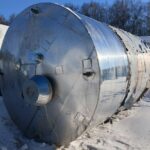 Емкость нержавеющая, объем 42 куб.м., горизонтального исполнения, на цилиндрической части имеется имеются две независимые рубашки. На верхней части расположен технологический люк (фланцевый). Размеры — 2,45 м диаметр емкости, 9,9 м общая длина. Толщина стенки — 11,1-11,5 мм боковые эллиптические части,…