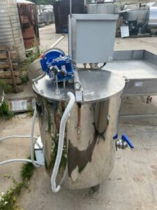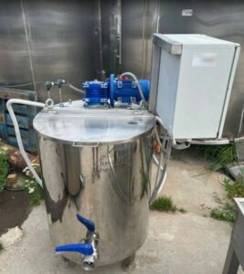 Емкость нержавеющая, объем 150 л, с рубашкой, термоизоляцией, электрическим нагревом и перемешивающим устройством.