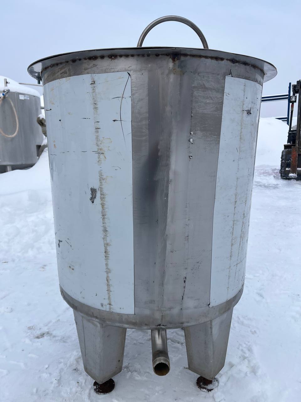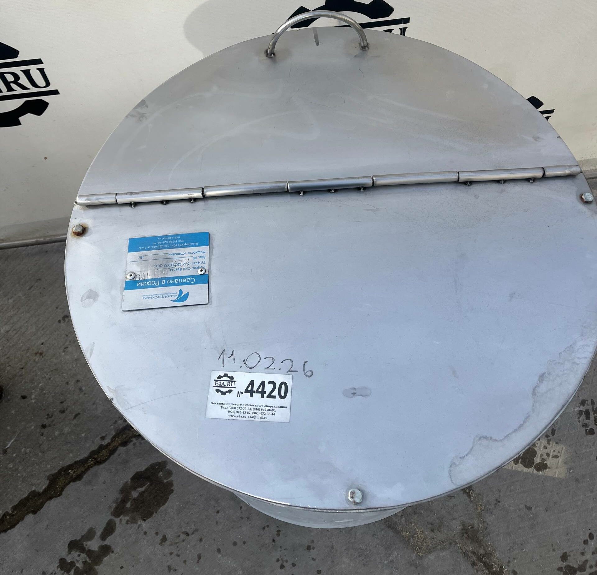Емкости нержавеющие, объем 150 л. В наличии 2 шт. Габариты для перевозки: общая высота — 0,95 м, диаметр — 0,6 м. инв 4420, инв 4421