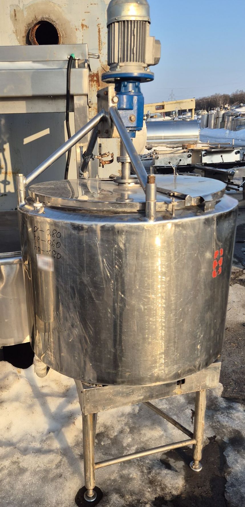 Главная > > > Емкости, резервуары, реакторы, сборники > > > нержавеющие емкости, реактора, сборники объем 0 - 0,9 куб.м. > > > Объем — 0,2 куб.м., емкость нержавеющая, рубашка, термос, мешалка, эл. нагрев, инв 13982