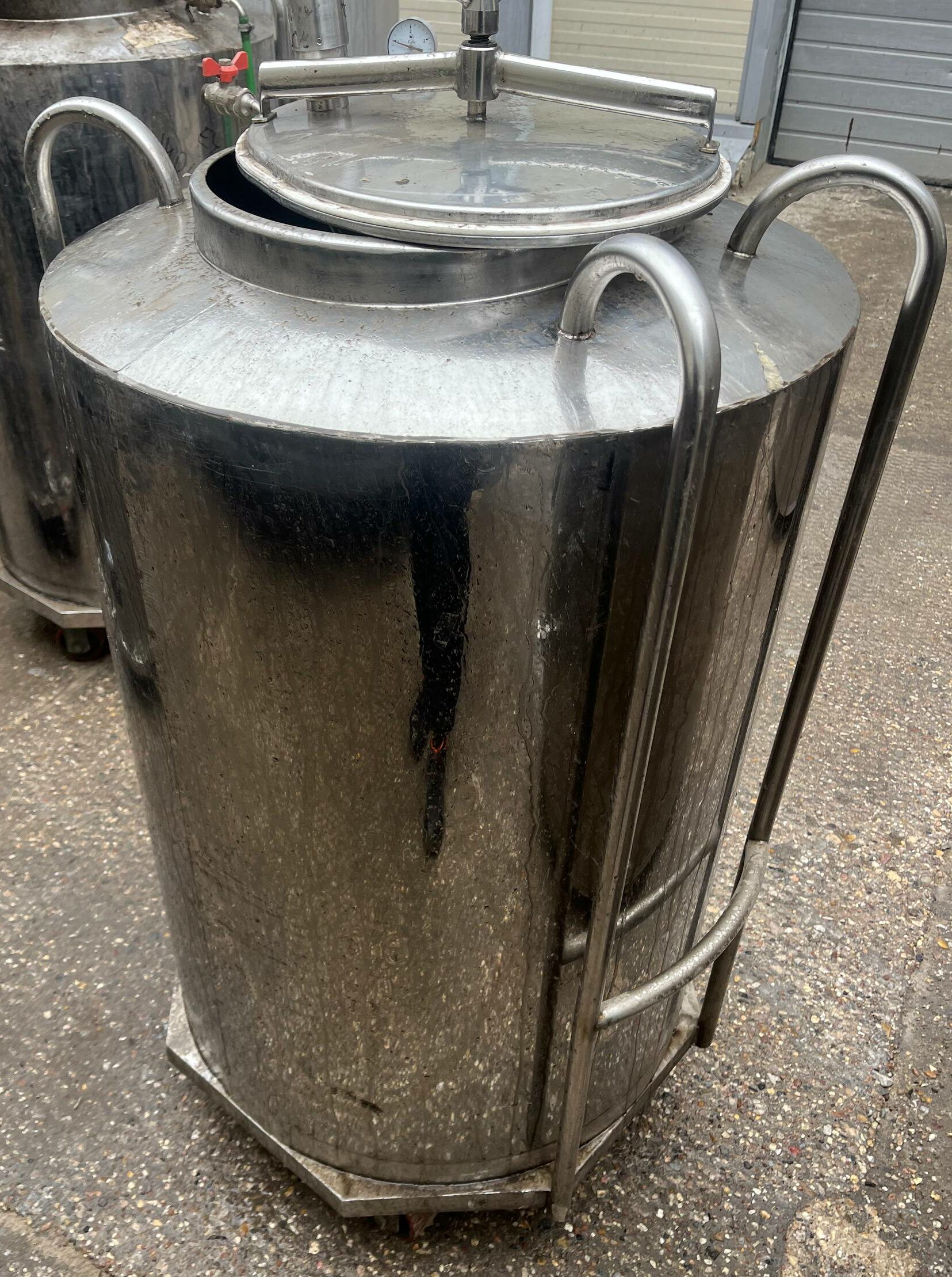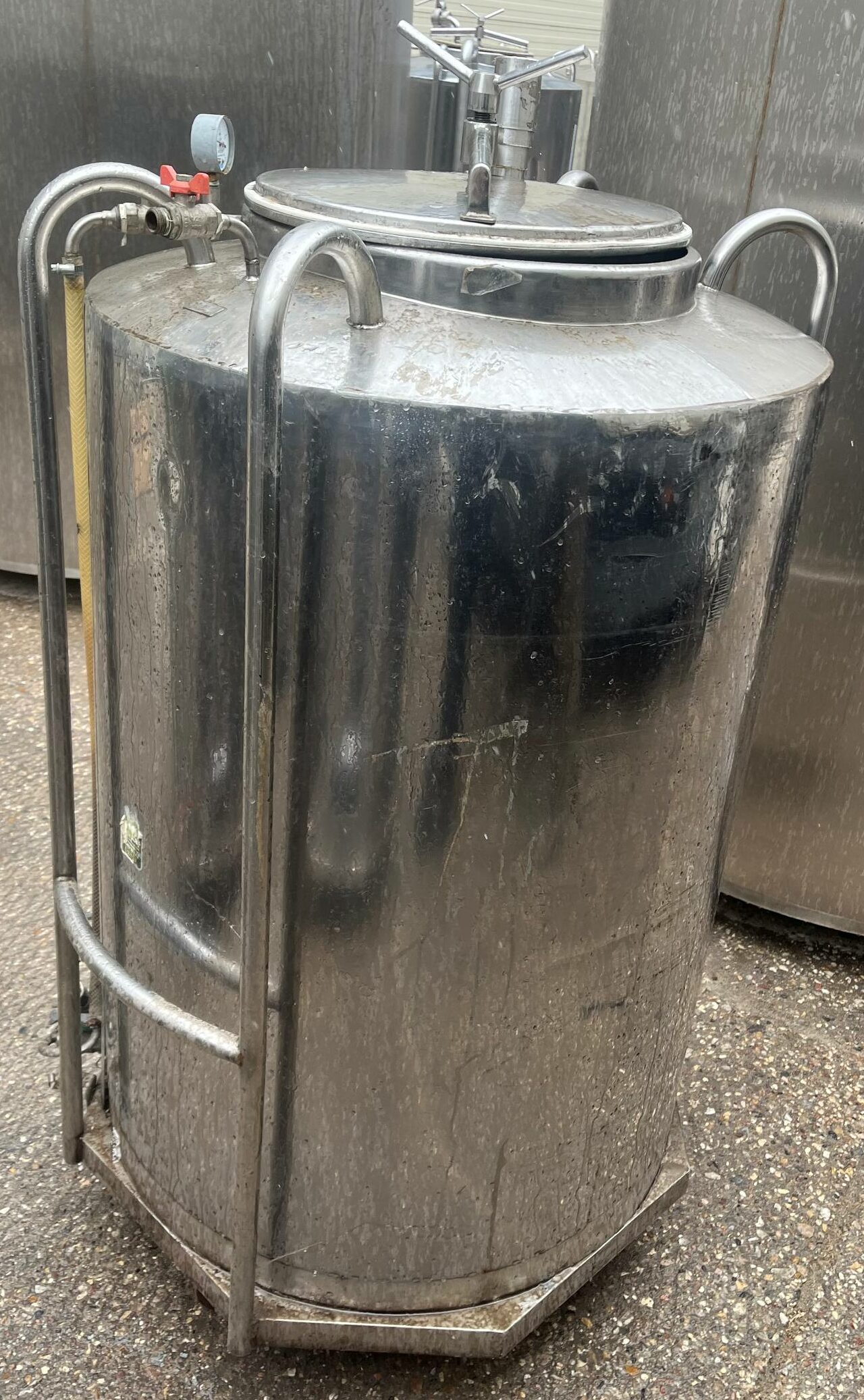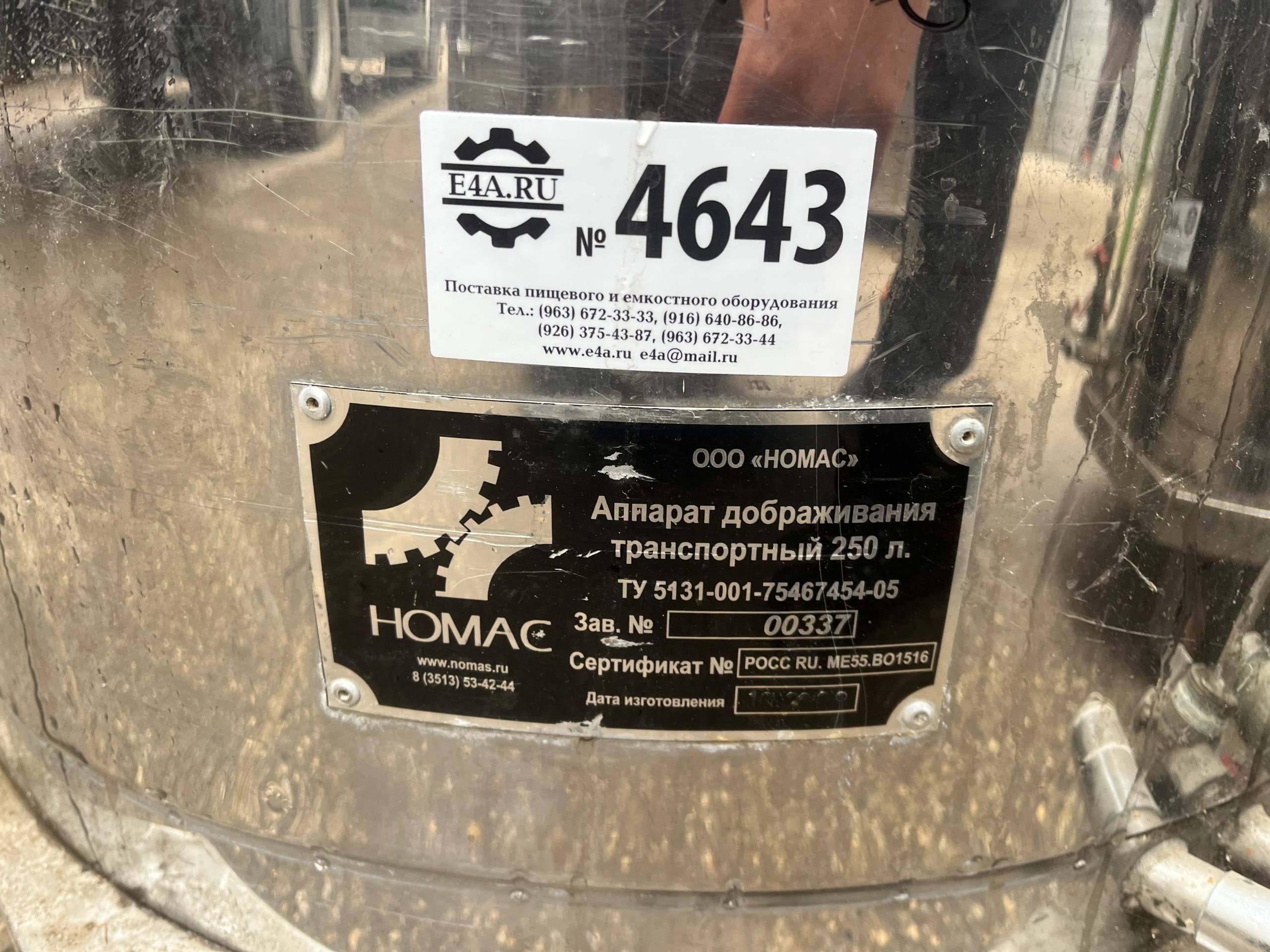 Емкости нержавеющие, объем 250 л, с рубашкой на цилиндрической части. В наличии 5 шт. инв 4640, инв 4641, инв 4642, инв 4643, инв 4644