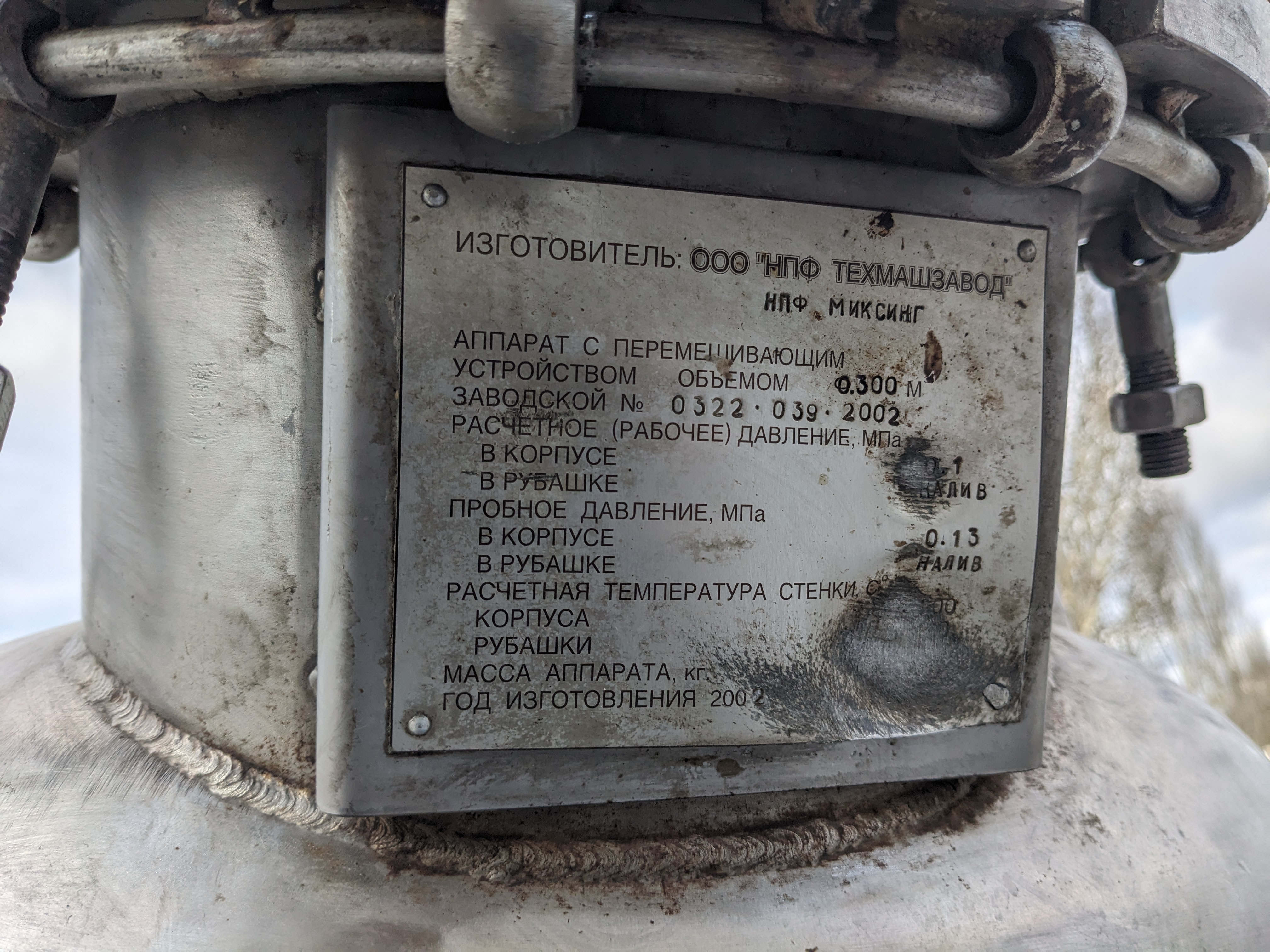 Главная > > > Емкости, резервуары, реакторы, сборники > > > нержавеющие емкости, реактора, сборники объем 0 - 0,9 куб.м. > > > Объем — 0,3 куб.м., емкость нержавеющая рубашка, мешалка, термос, инв 13976