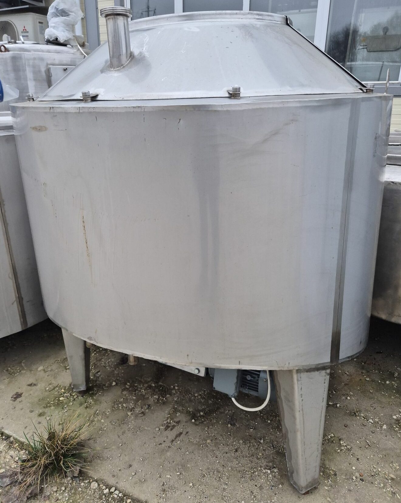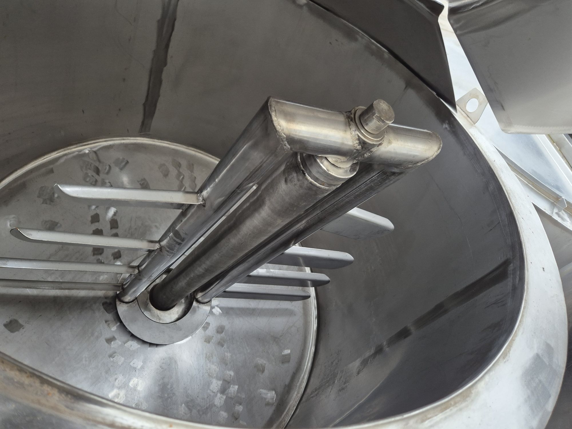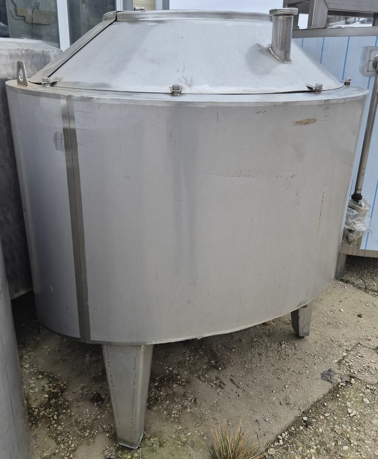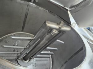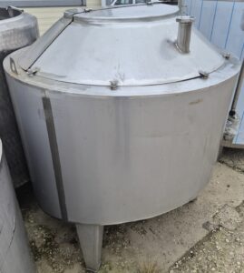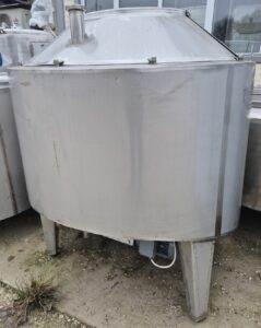 Ванна нормализации ВН-600, объем — 0,63 куб.м. Ванна предназначена для нормализации высокожирных сливок. В ванне может осуществляться подогрев и охлаждение любого молочного продукта в соответствии с технологическим процессом. Ванна представляет собой 2х-стенный цилиндрический вертикальный сосуд с наклонным дном, снабженный механической лопастной мешалкой. В качестве теплоносителя используется горячая вода или пар, который вводится в предварительно заполненную водой рубашку емкости. Для выхода воздуха и воды из межстенной емкости имеется переливная труба.