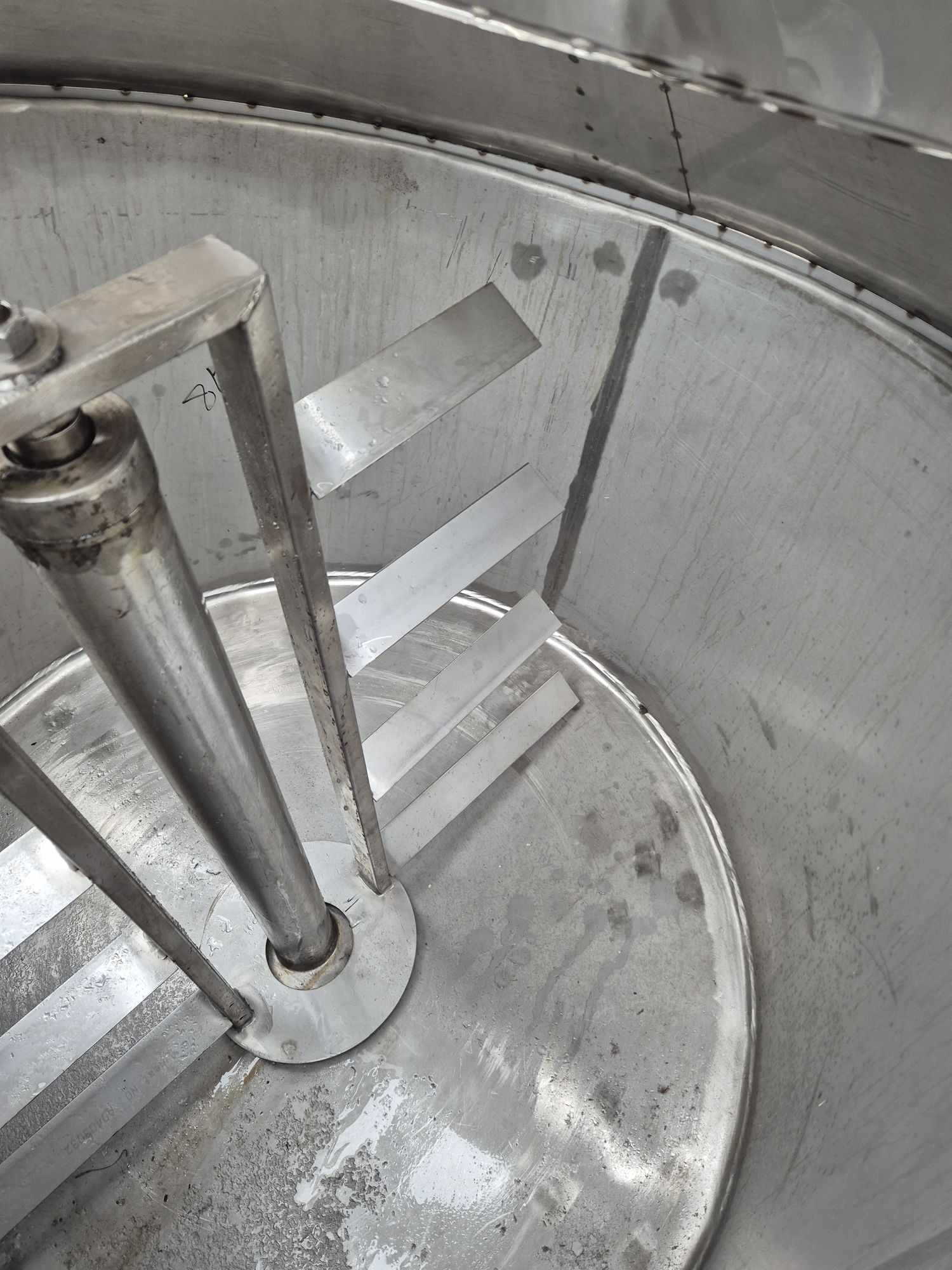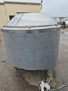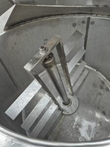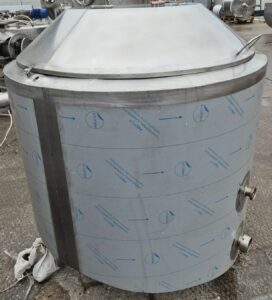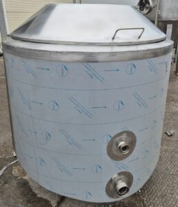 Ванна нормализации ВН-600, объем — 0,63 куб.м. Ванна предназначена для нормализации высокожирных сливок. В ванне может осуществляться подогрев и охлаждение любого молочного продукта в соответствии с технологическим процессом. Ванна представляет собой 2х-стенный цилиндрический вертикальный сосуд с наклонным дном, снабженный механической лопастной мешалкой. В качестве теплоносителя используется горячая вода или пар, который вводится в предварительно заполненную водой рубашку емкости. Для выхода воздуха и воды из межстенной емкости имеется переливная труба.