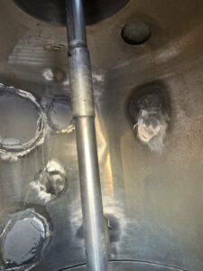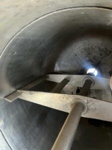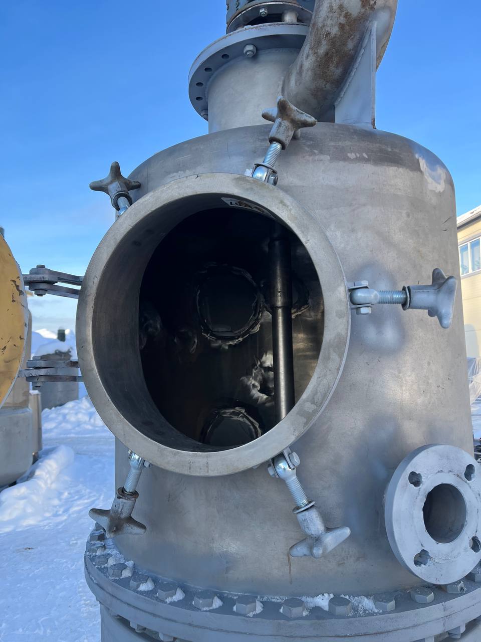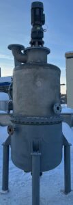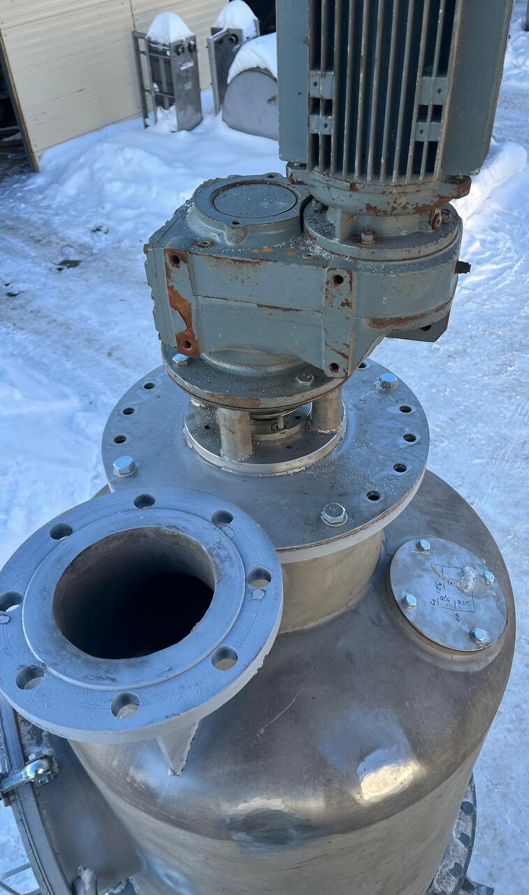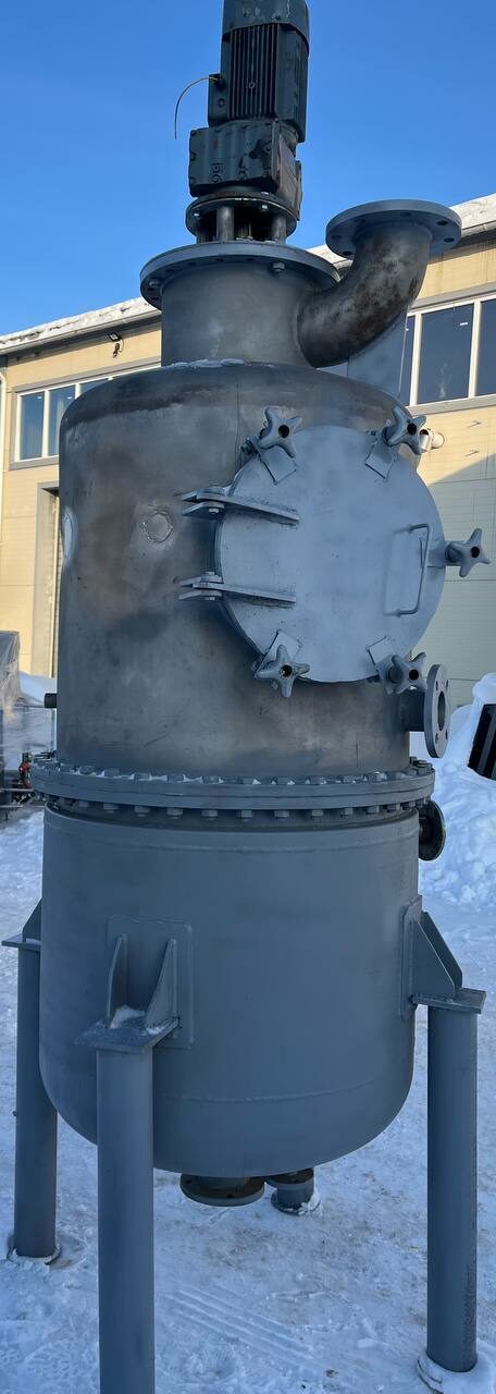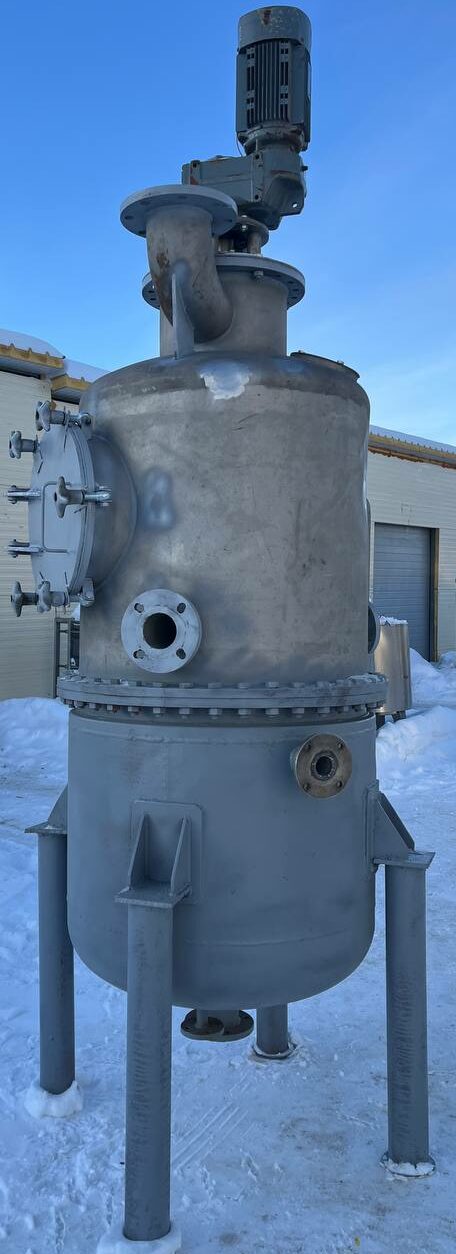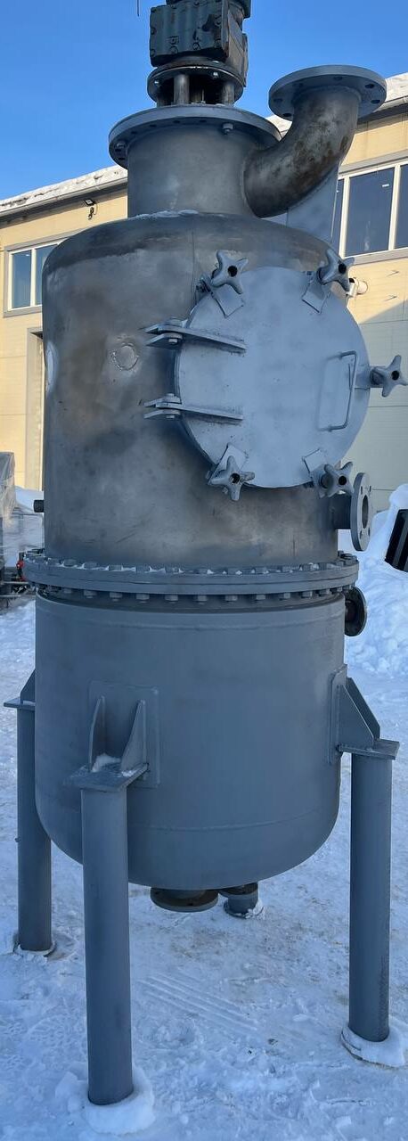 Варочный котел (кристаллизатор), объем 0,7 куб.м., с рубашкой для нагрева или охлаждения. Размеры — 0,8 м внутренний диаметр, 1 м наружный диаметр с учётом большого фланца, 2,25 общая высота. Толщина стенки — 4 мм цилиндрическая часть корпуса, 4,5 мм верхняя часть корпуса, 5-5,3 мм нижняя часть рубашки 5,3-5,5 мм цилиндрическая часть рубашки.