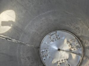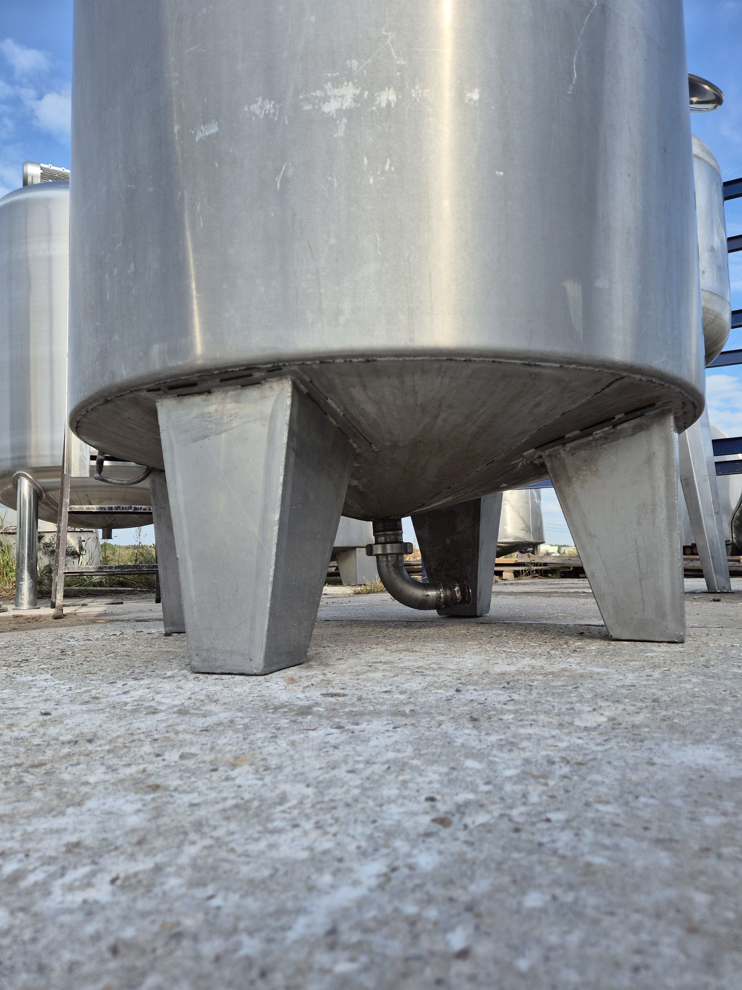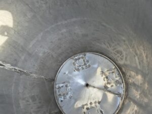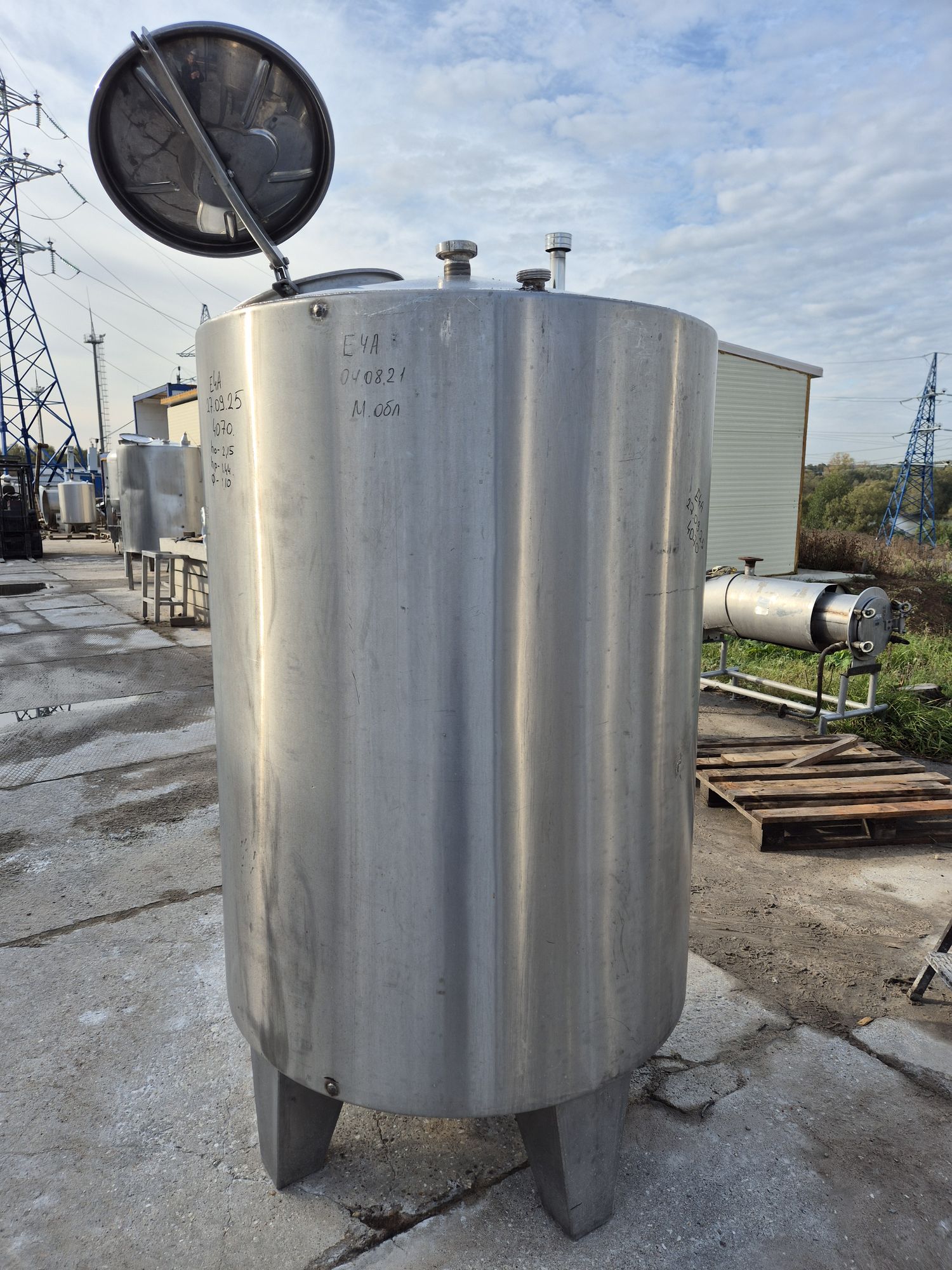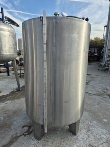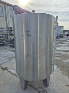 Емкость нержавеющая, объем 1,35 куб.м., вертикального исполнение, коническое дно. Размеры — 1,1 м диаметр, 1,44 м высота цилиндрической части, 2,15 м общая высота. Инв 4070.