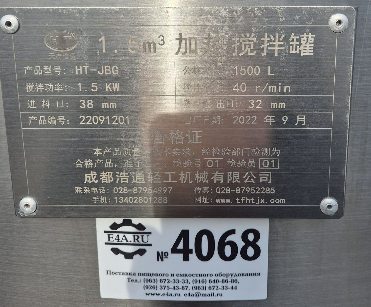 Объем — 1,5 куб.м, емкость нержавеющая, вертикальная, змеевик, мешалка, инв 4068