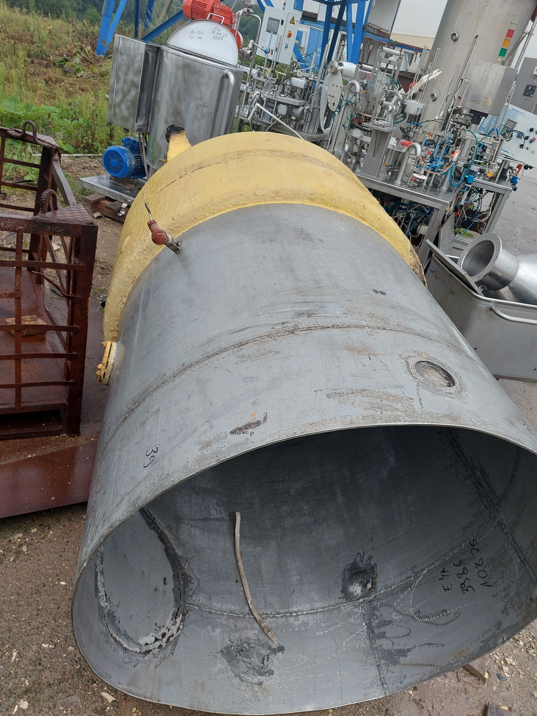 Варочный котёл МЗС-320 без верхней части, объем 1,5 куб.м., с рубашкой для нагрева или охлаждения, без перемешивающего устройства. При необходимости можем сделать плоскую или коническую верхнюю часть, изготовить и установить новое перемешивающее устройство (примеры работ вышлем при необходимости). Инв 3986.