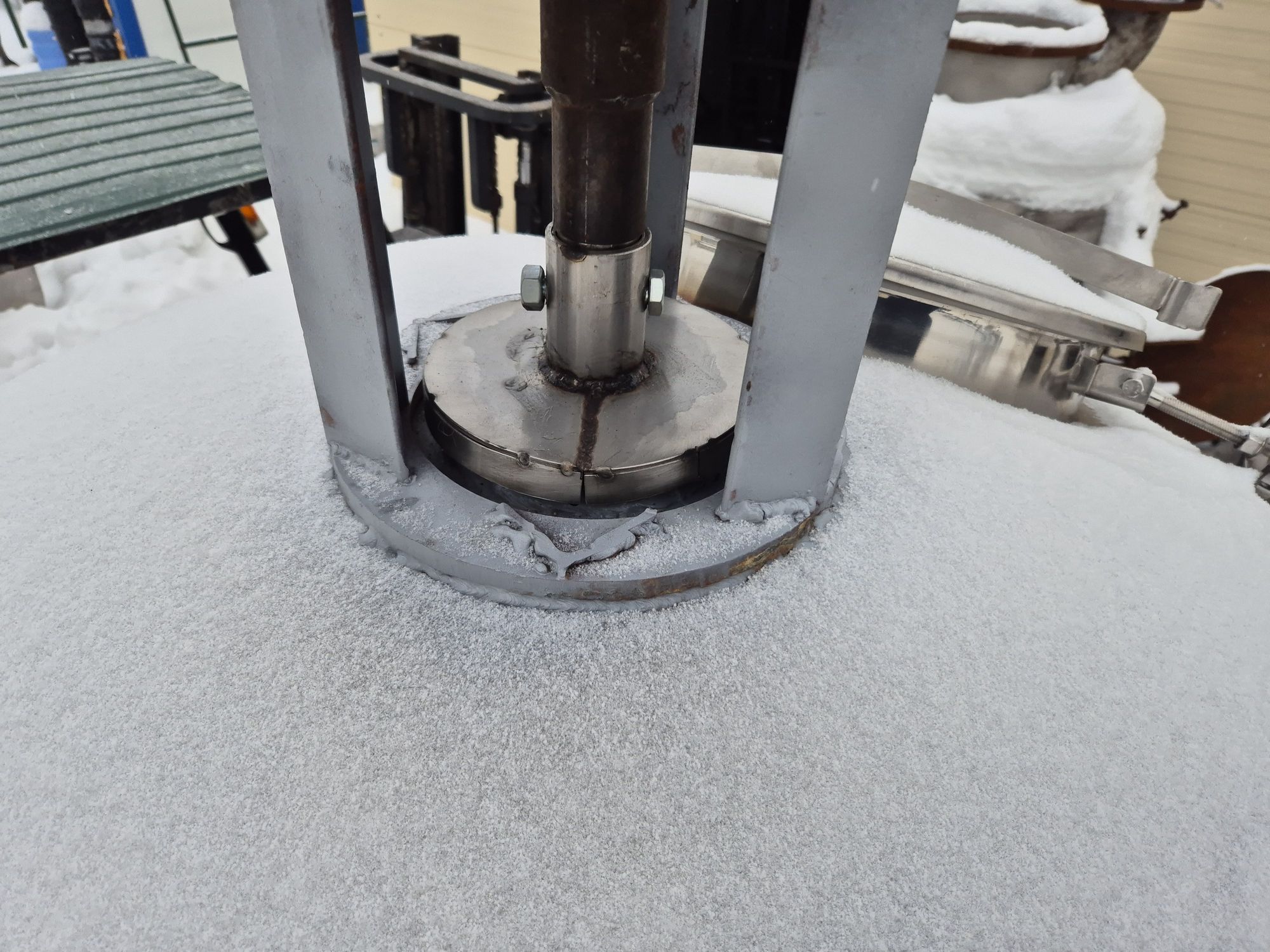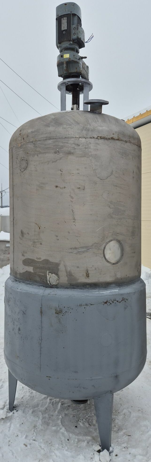 Варочный котёл МЗС-320, объем 1,5 куб.м. (геометрический объем 1,8-1,9 куба), с рубашкой для нагрева или охлаждения и перемешивающим устройством, рамного типа. Инв 4163.