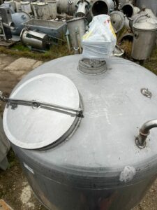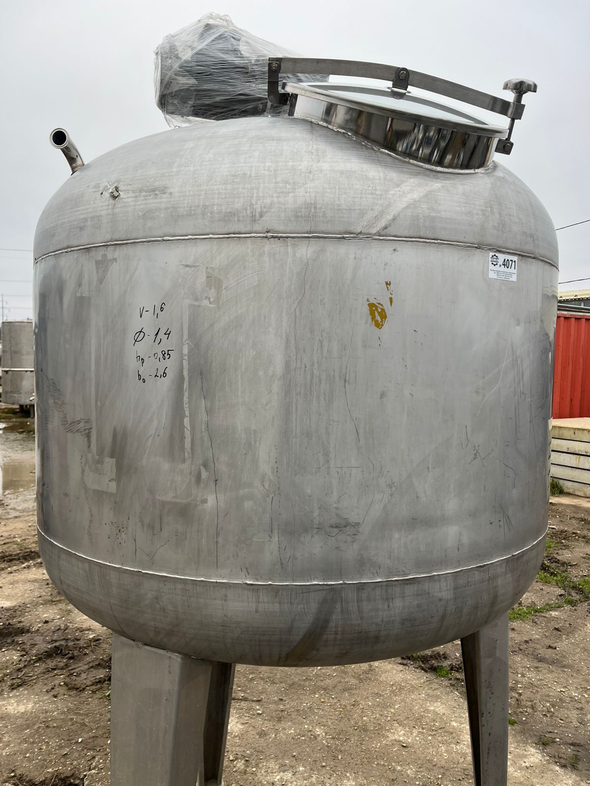 Емкости нержавеющие, объем 1,6 куб.м., вертикального исполнения, эллиптическая верхняя и нижняя часть, мешалка лопастного типа. Размеры — 1,4 м диаметр, 2,6 м общая высота. Количество 2 шт.
