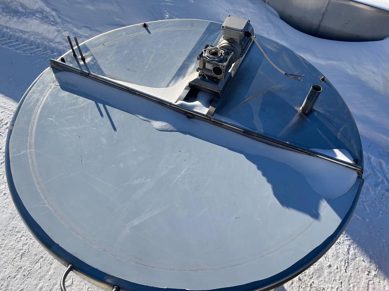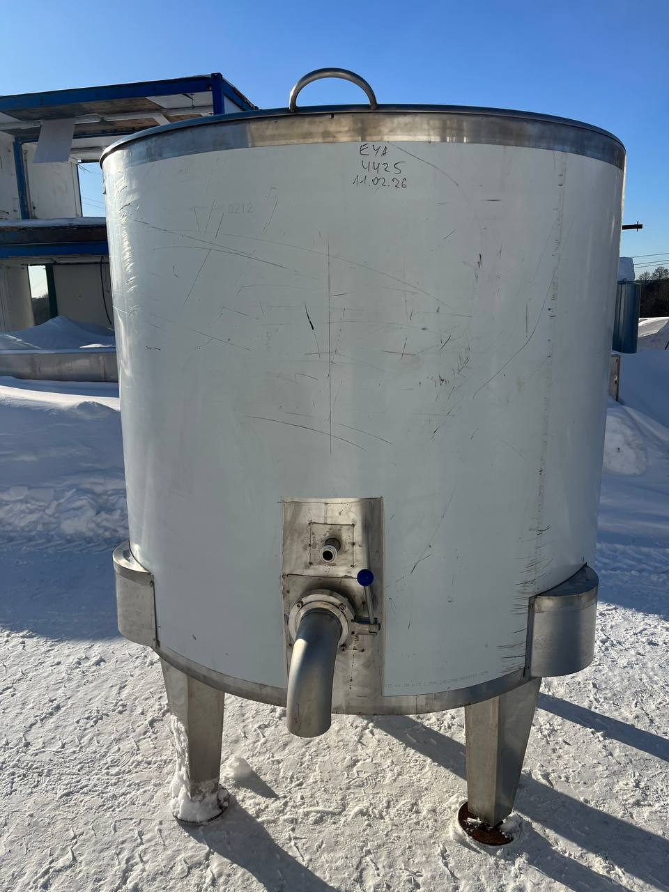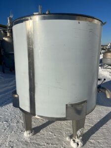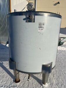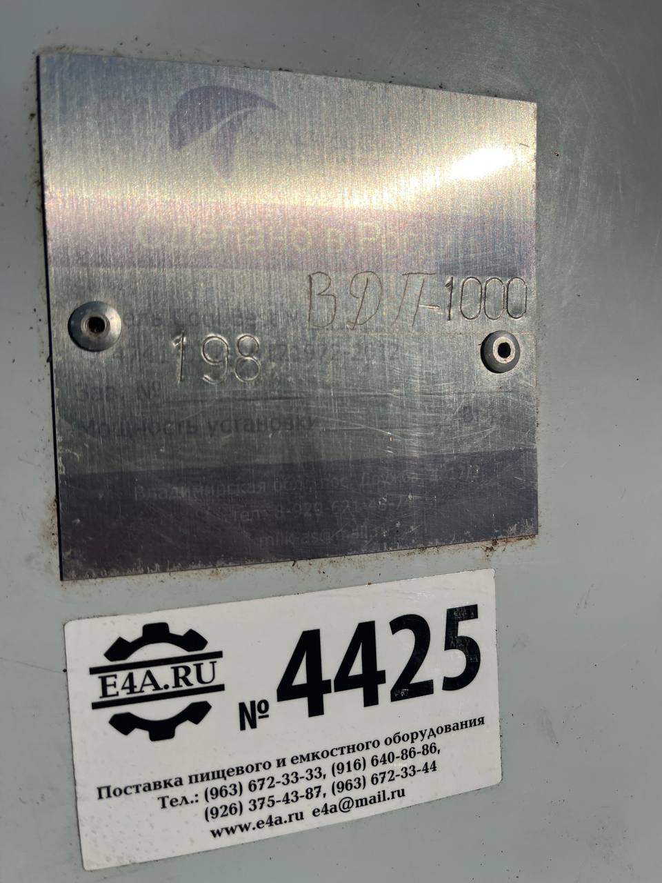 Емкость нержавеющая ВДП-1000 (ванна длительной пастеризации), объем 1 куб.м., вертикального исполнения, с рубашкой для нагрева или охлаждения, электрическим нагревом теплоносителя в рубашке, термоизоляцией, перемешивающим устройством. Размеры — 1,38 м внутренний диаметр, 1,2 м высота цилиндрической части внутри, 1 м наружный диаметр, 1,98 м общая высота. Инв 4425.