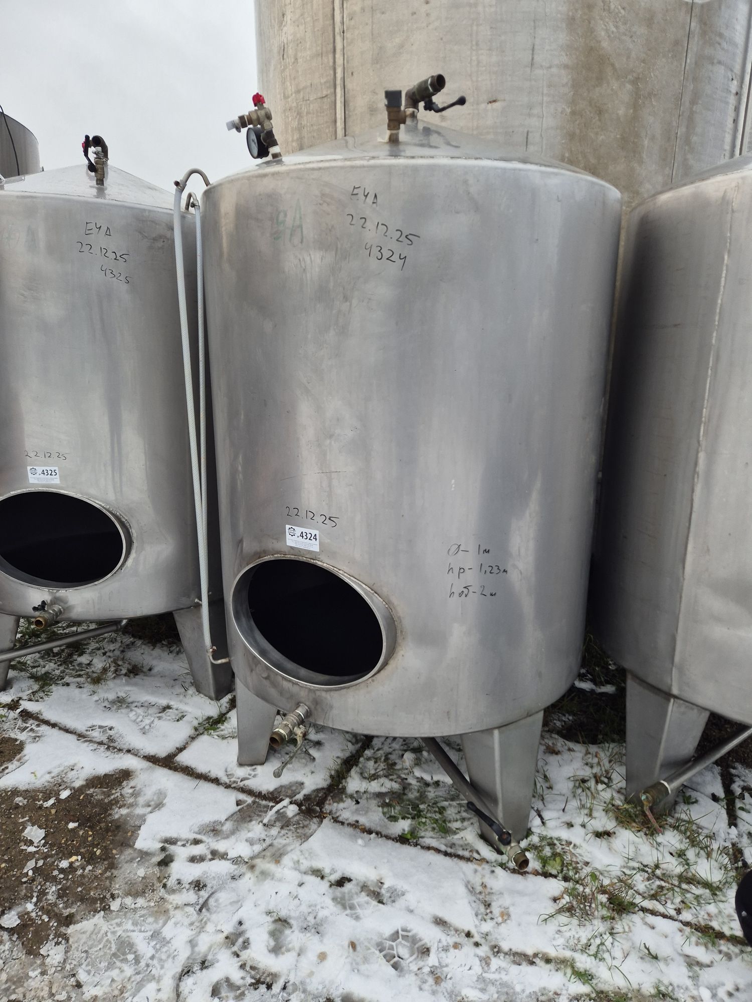 Емкости нержавеющие, объем 1 куб.м. вертикального исполнения, люк на цилиндрической части. Размеры 1 м диаметр, 2 м общая высота, 1,23 м высота цилиндрической части. В наличии большое количество. Инв 4324.