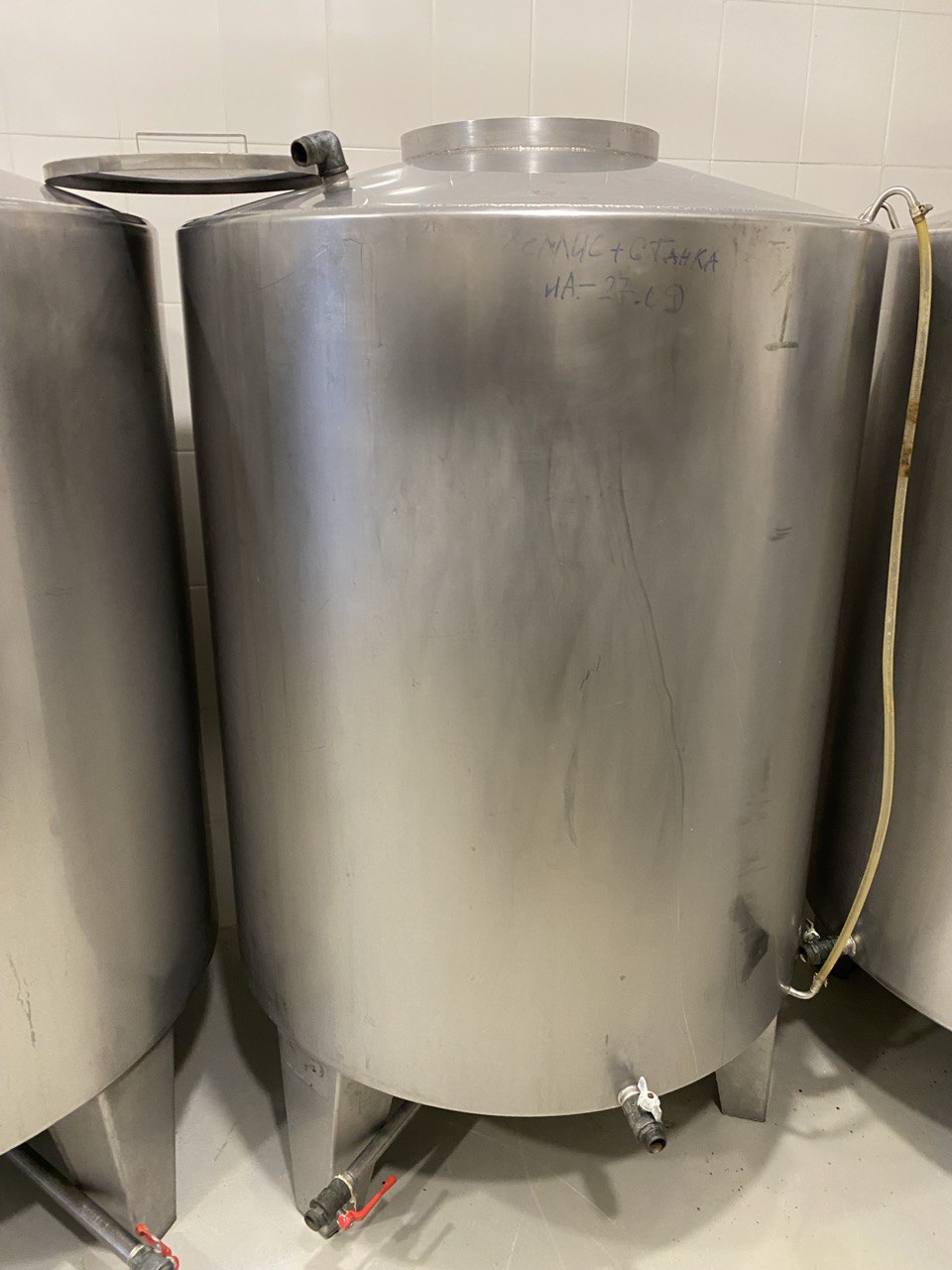 Объем — 1 куб.м., емкости нержавеющие (форфас), вертикальные, инв 4342