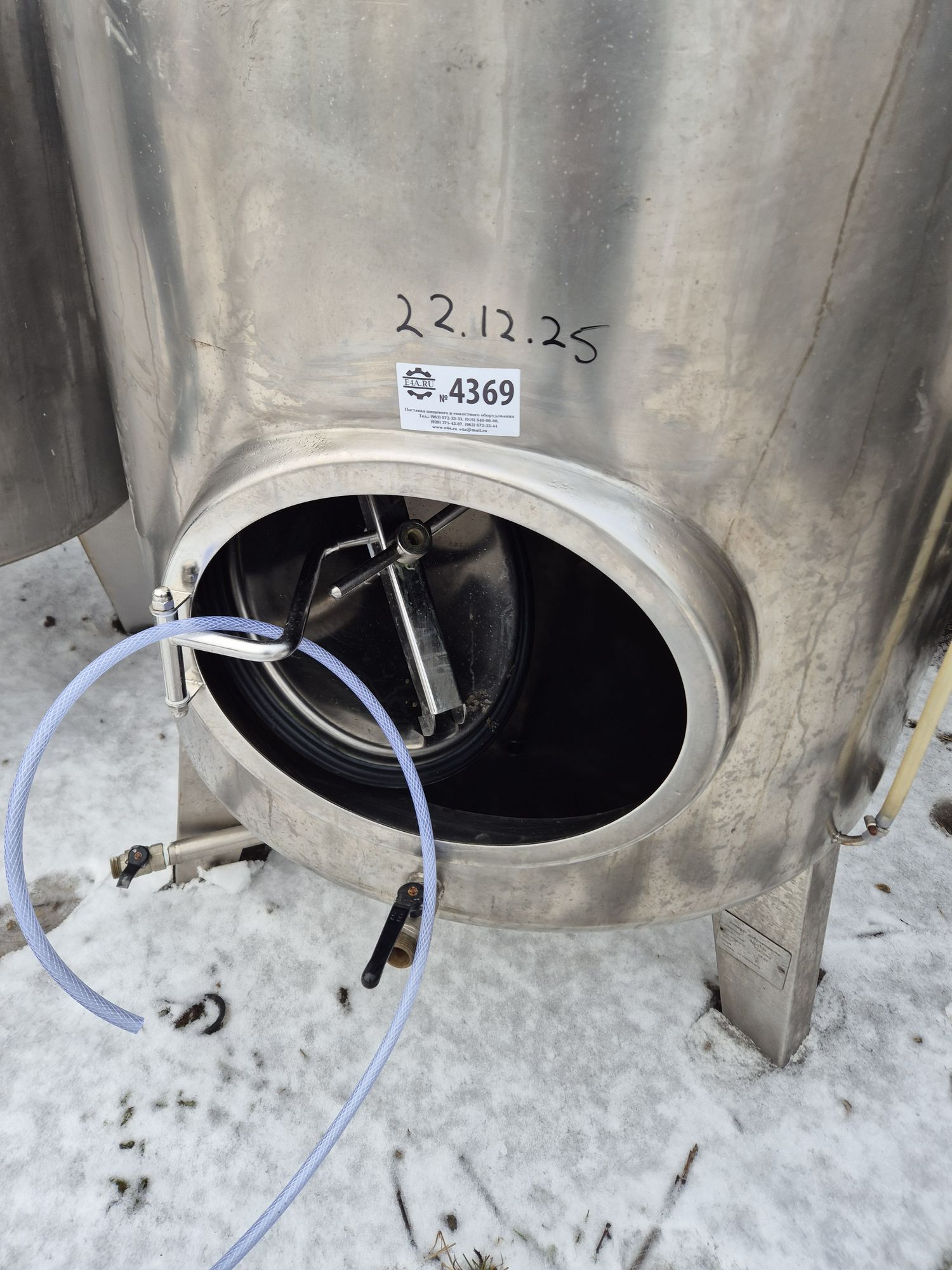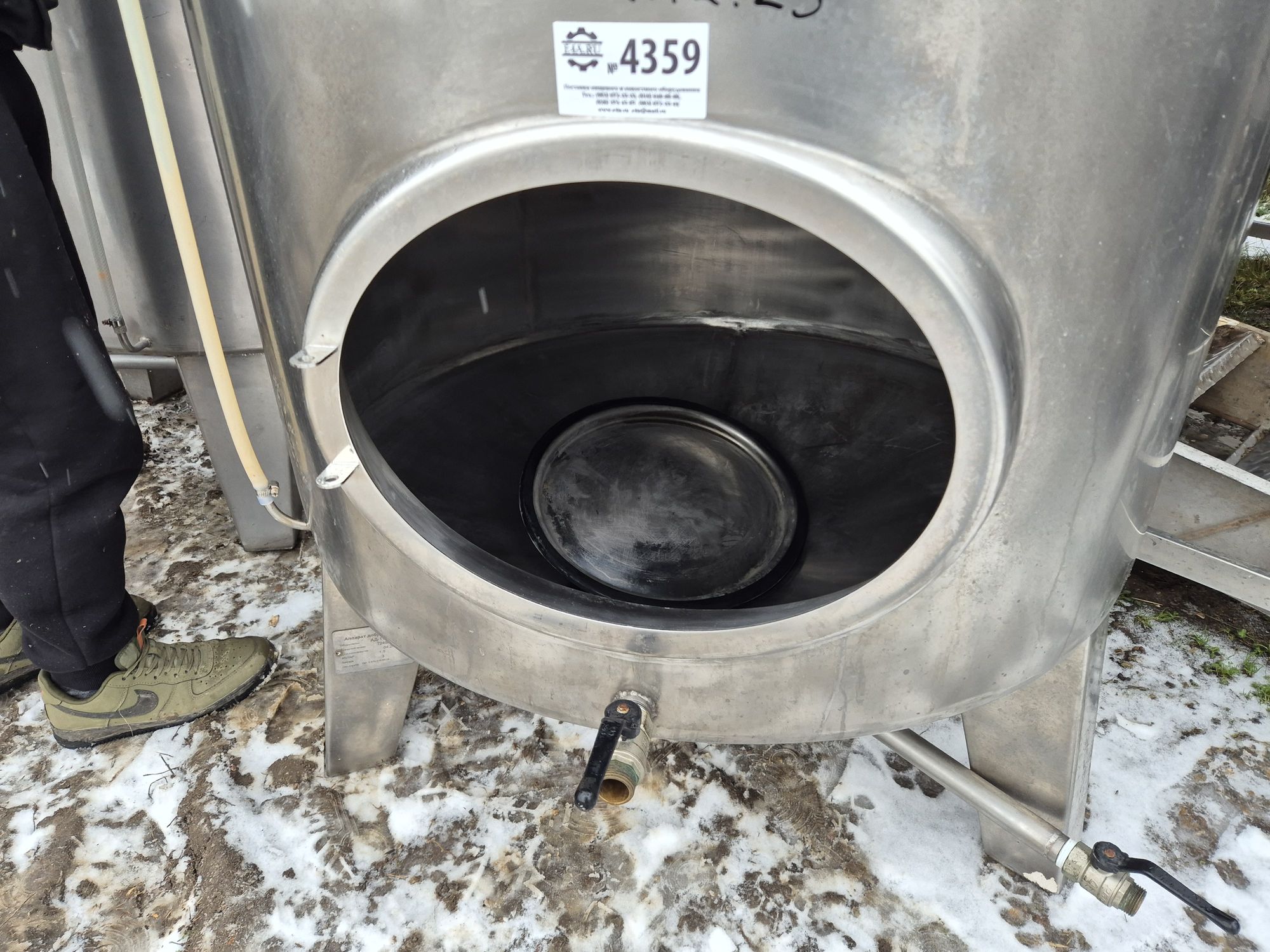 Объем — 1 куб.м., емкости нержавеющие (аппарат дображивания), вертикальные, инв 4339