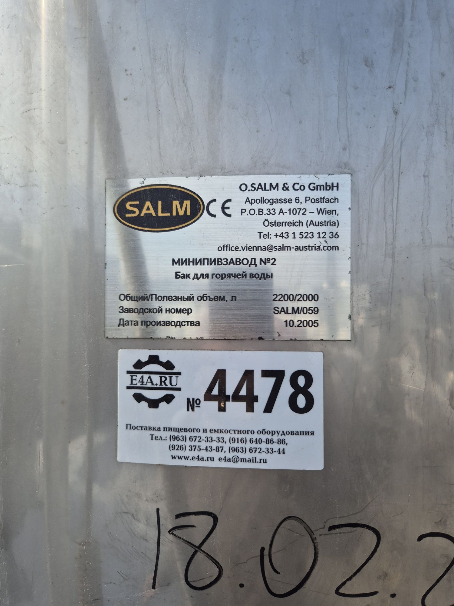 Объем — 2 куб.м., емкость нержавеющая, бойлер, термос, инв 4478