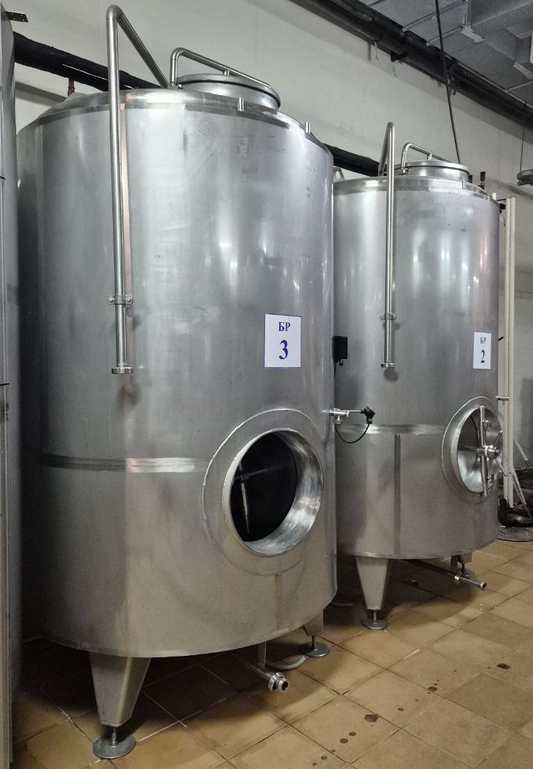 Емкости нержавеющие (бродильный танк), объем — 2000 литров (геометрический объем 2300 литров), производство Salm (Австрия), вертикального исполнения, с рубашкой и термоизоляцией. Емкость имеет два технологических люка, один на цилиндрической части, один на верхней части.