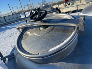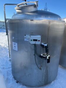 Емкости нержавеющие (бродильный танк), объем — 2000 литров (геометрический объем 2300 литров), производство Salm (Австрия), вертикального исполнения, с рубашкой и термоизоляцией. Инв 4445.