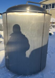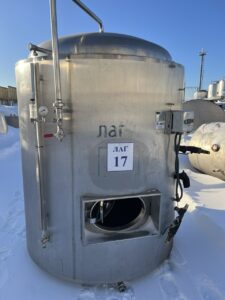 Емкости нержавеющие (лагерный танк, бродильный танк), объем — 2000 литров (геометрический объем 2200 литров), производство Salm (Австрия), вертикального исполнения, с рубашкой (на цилндрической части) и термоизоляцией. Инв 4430.