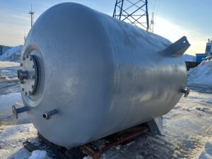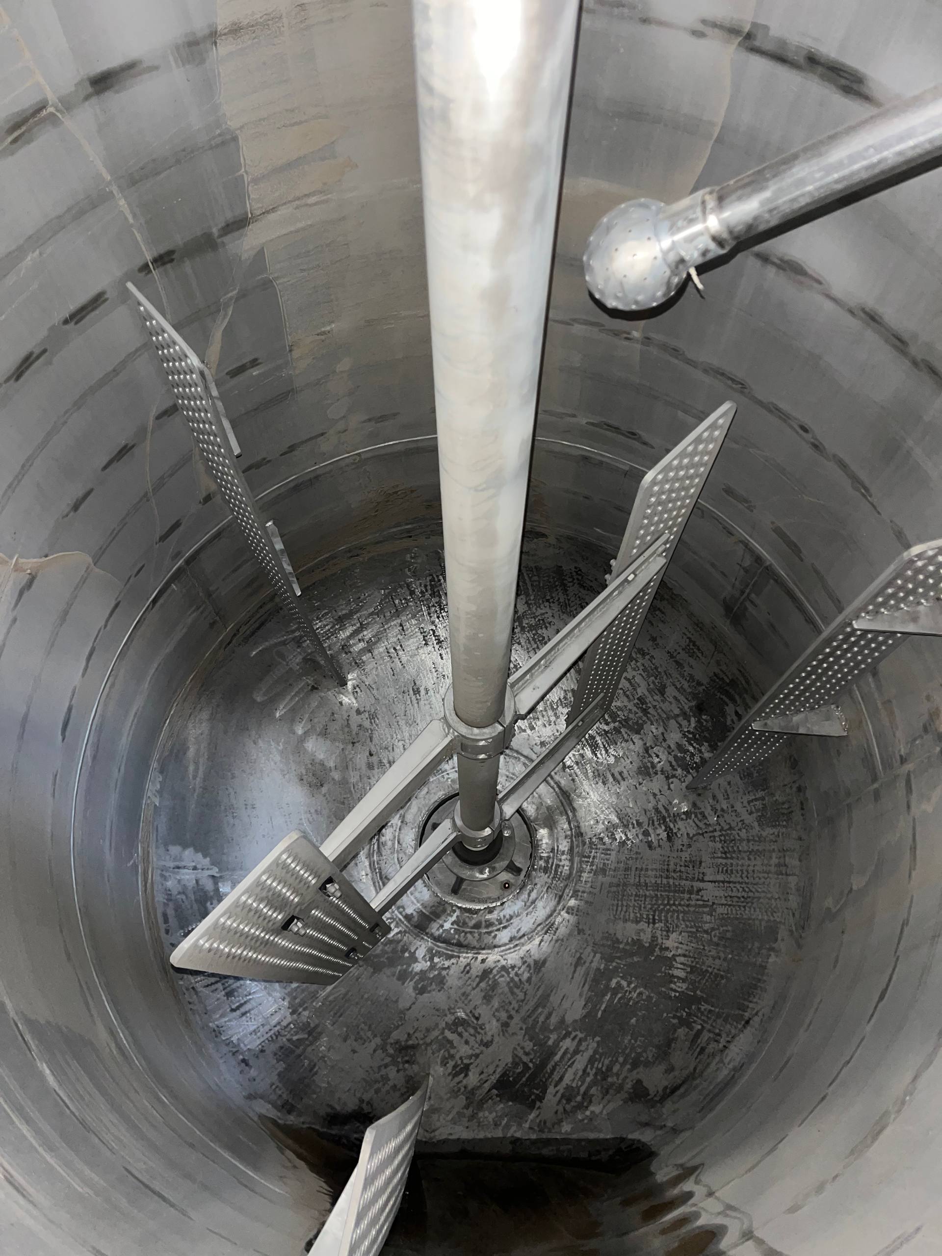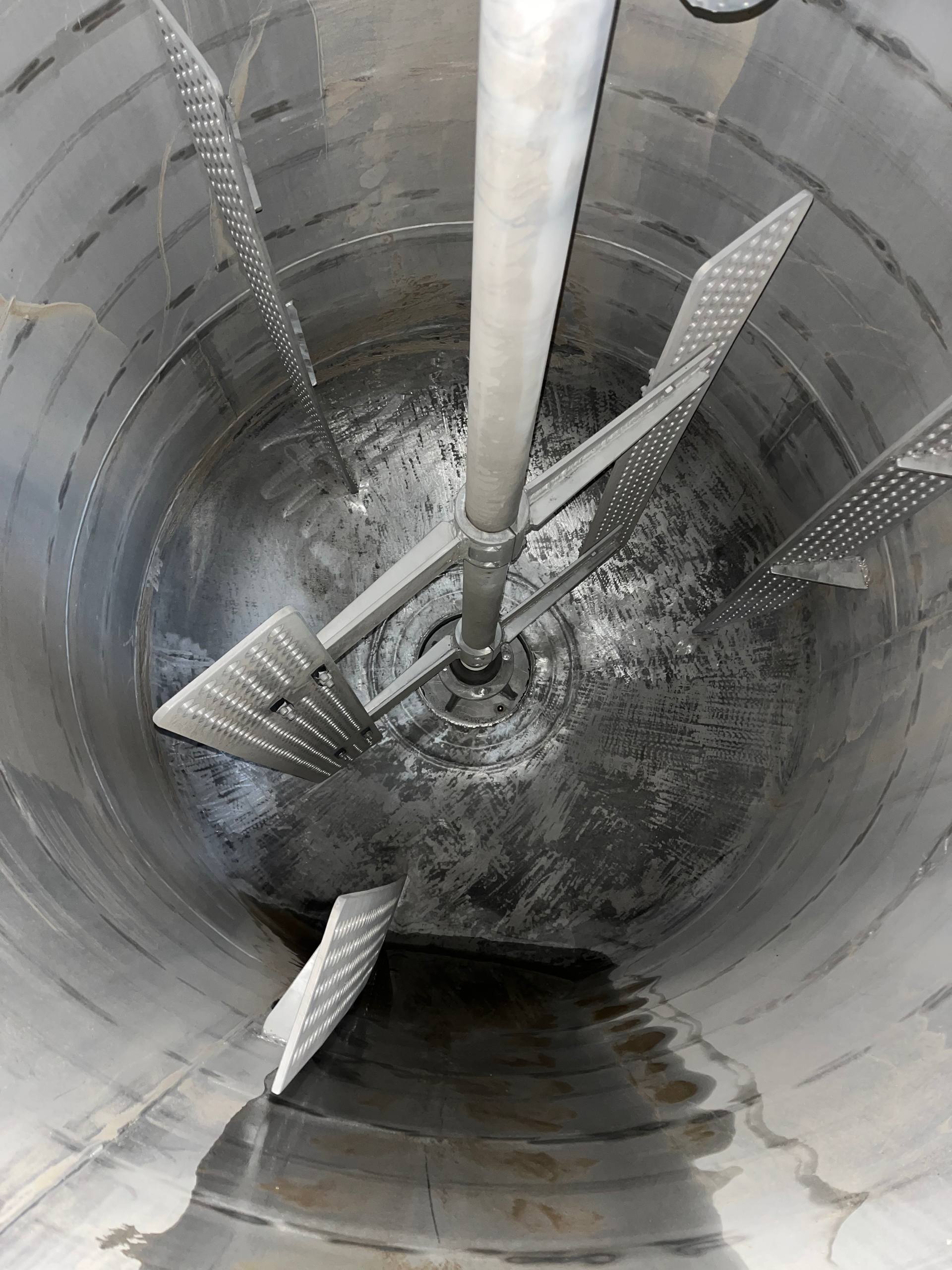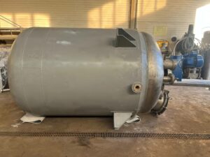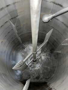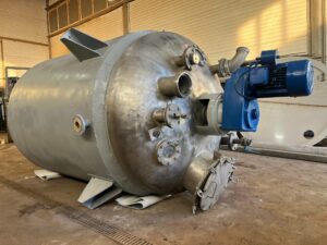 Реактор нержавеющий (варочный котел), объем 4 куб.м., рубашка, мешалка. Мешалка 30 об/мин, двигатель 5,5 кВт. Габариты — 3,8 м общая высота, 1,7 м наружный диаметр. Инв 4015.
