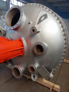 Реактор из нержавеющей стали объём 6,3 куб.м., с рубашкой, якорной мешалкой.
