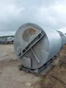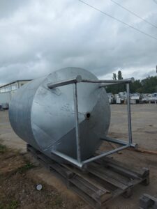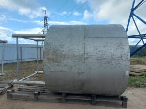 Емкости нержавеющие, объем 7,5 куб.м., вертикального исполнения. Размеры — 2,2 м диаметр, 2 м высота цилиндрической части, 3,2 м общая высота. В наличии 2 шт. Инв 4011, инв 4012.