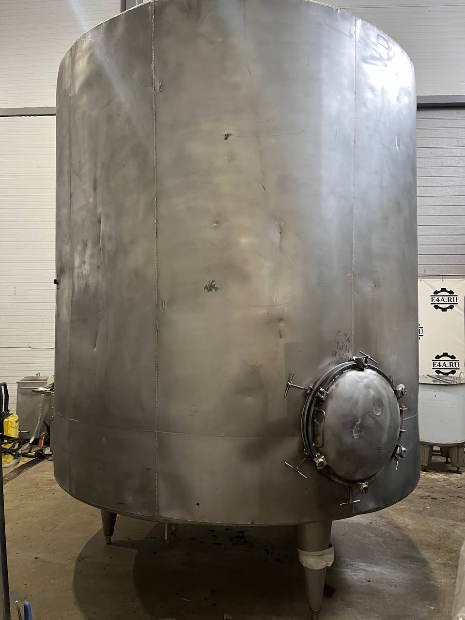 Емкость нержавеющая, вертикальная, объем 8 куб.м., с теплообменной рубашкой на цилиндрической части, термоизоляцией. Инв 4411.