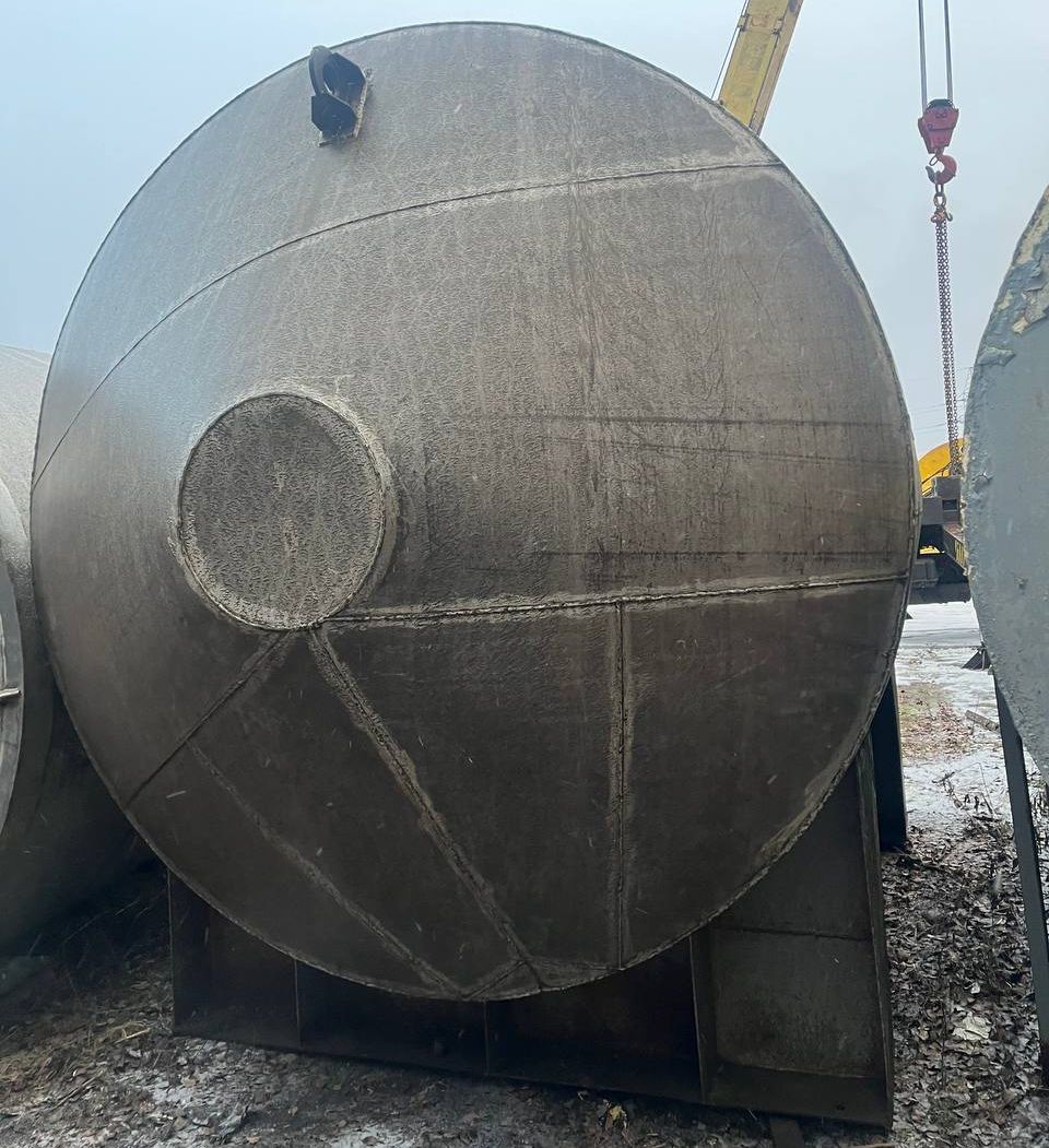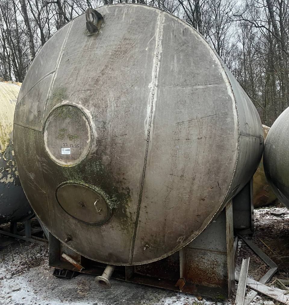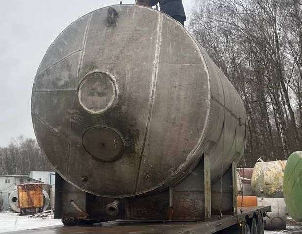 Емкость нержавеющая, объем 21 куб.м. (геометрический), горизонтального исполнения, на ложементов. На торцевой части имеется заглушенный технологический люк, при необходимости можем его восстановить или сделать люк на верхней части емкости. Инв 4400.