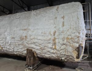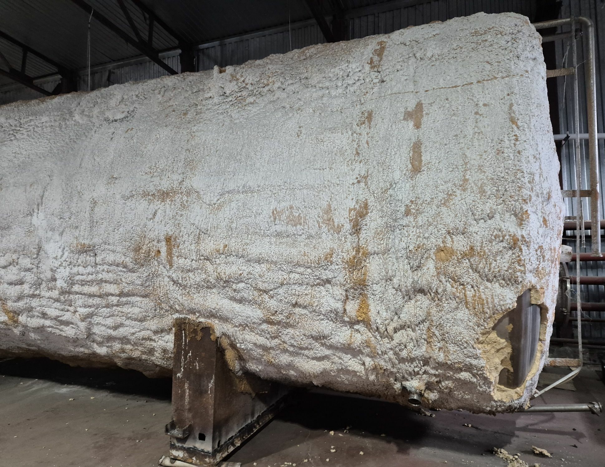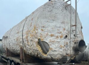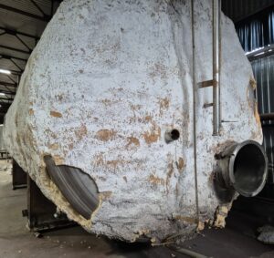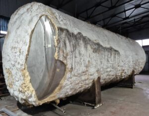 Емкость нержавеющая, объем 50 куб.м., горизонтального исполнения. инв 4310 Толщина стенки: эллиптическая часть — 3,8 мм, цилиндрическая часть — 2,7 мм.