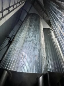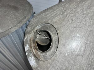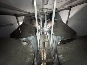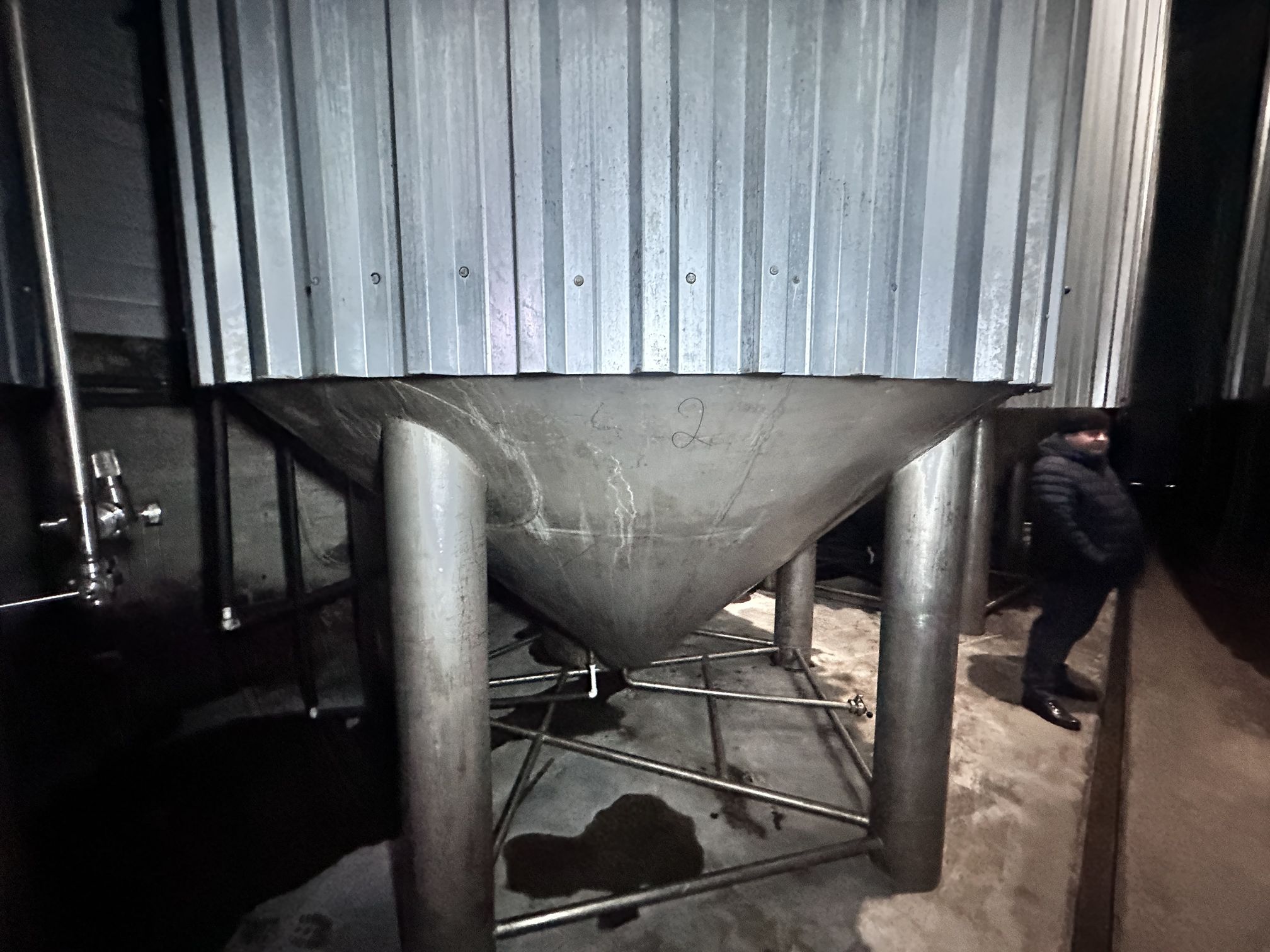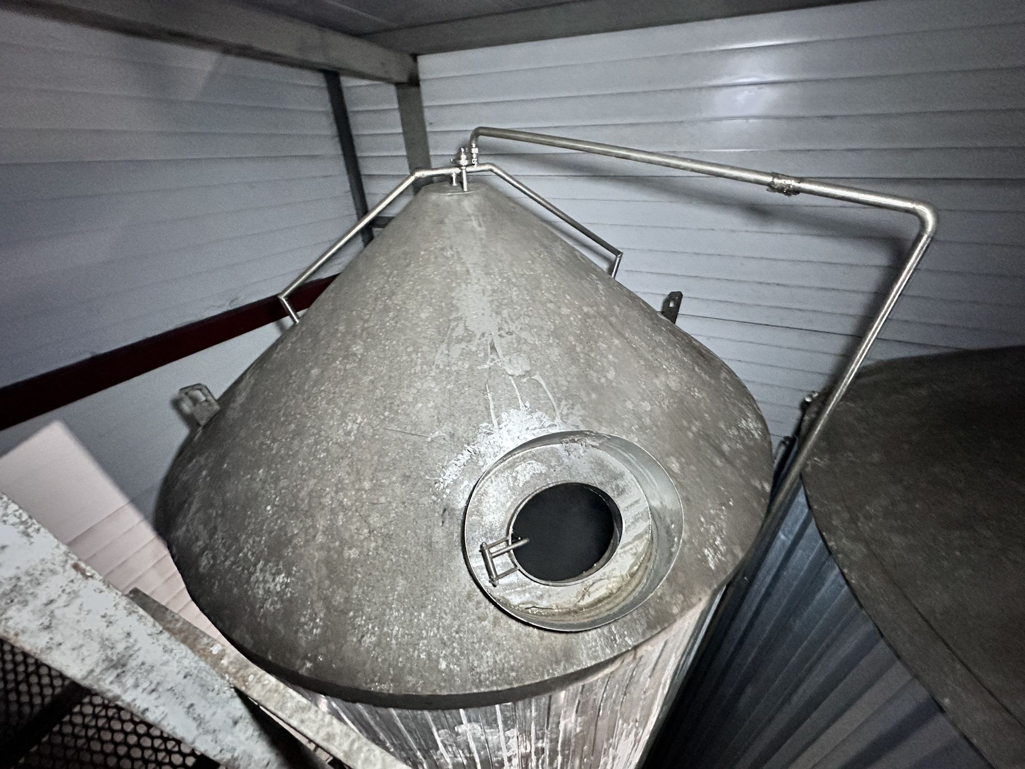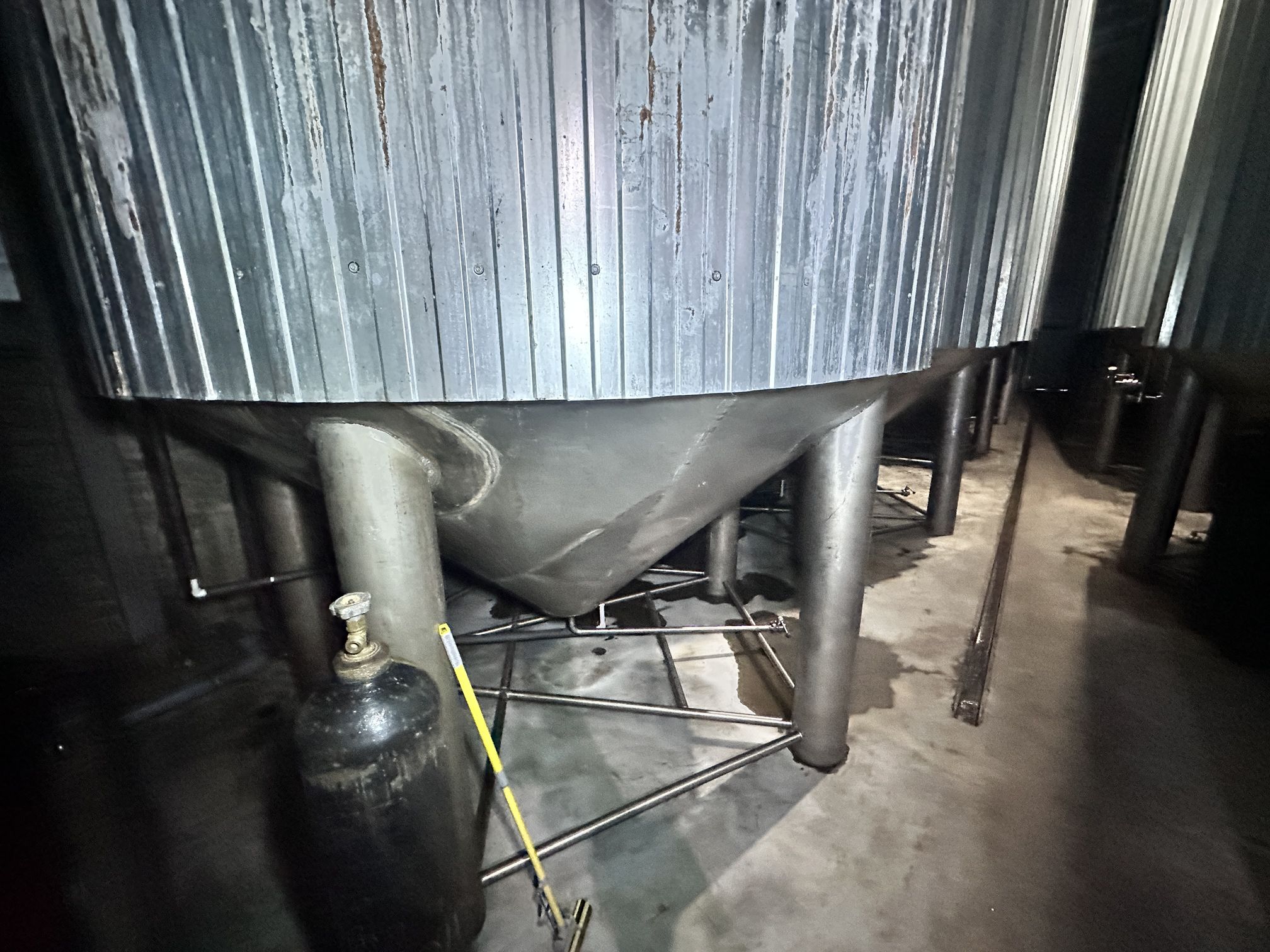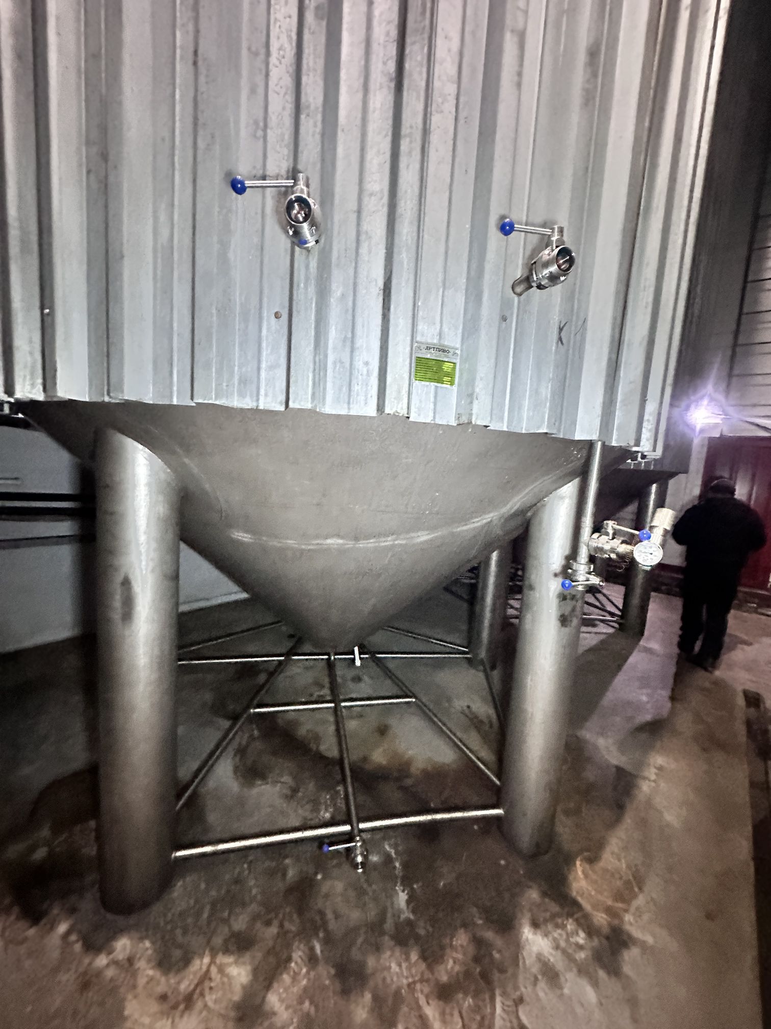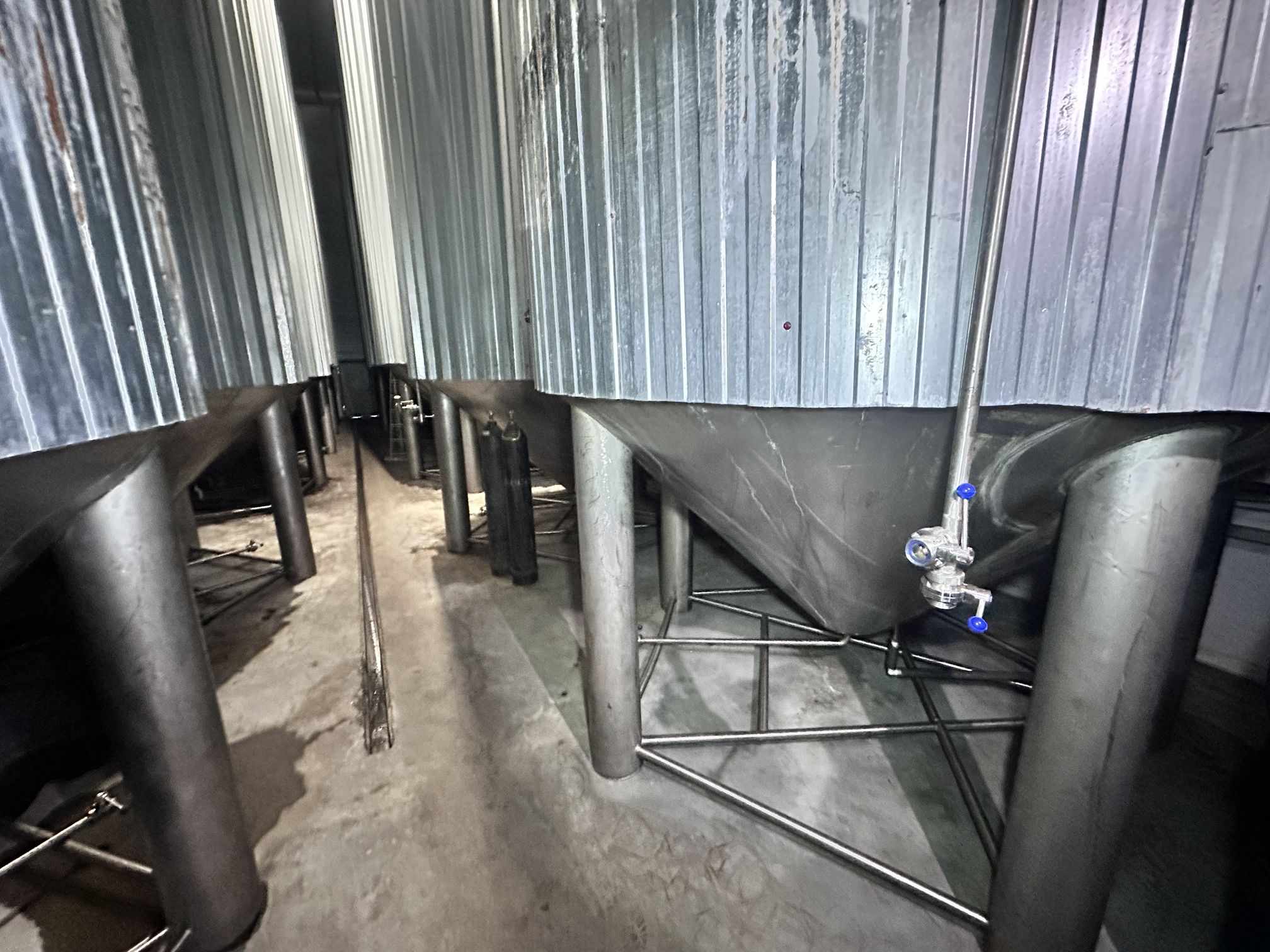 Цилиндро-конические танки ЦКТ, объем 50 куб.м., вертикального исполнения, на цилиндрической и конической части имеются теплообменные рубашки, по верх рубашки термоизоляция. Давление в емкости не более 1,2 бар. Давление в рубашке не более 0,5 бар.