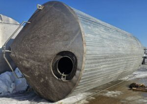 Цилиндро-конические танки ЦКТ, объем 50 куб.м., вертикального исполнения, на цилиндрической и конической части имеются теплообменные рубашки, поверх рубашки термоизоляция. Давление в емкости не более 1,2 бар. Давление в рубашке не более 0,5 бар.