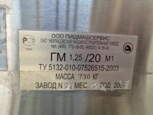 Гомогенизатор ГМ-1,25/20 М1, пр-ть 1250 л/час, инв 3619, резерв