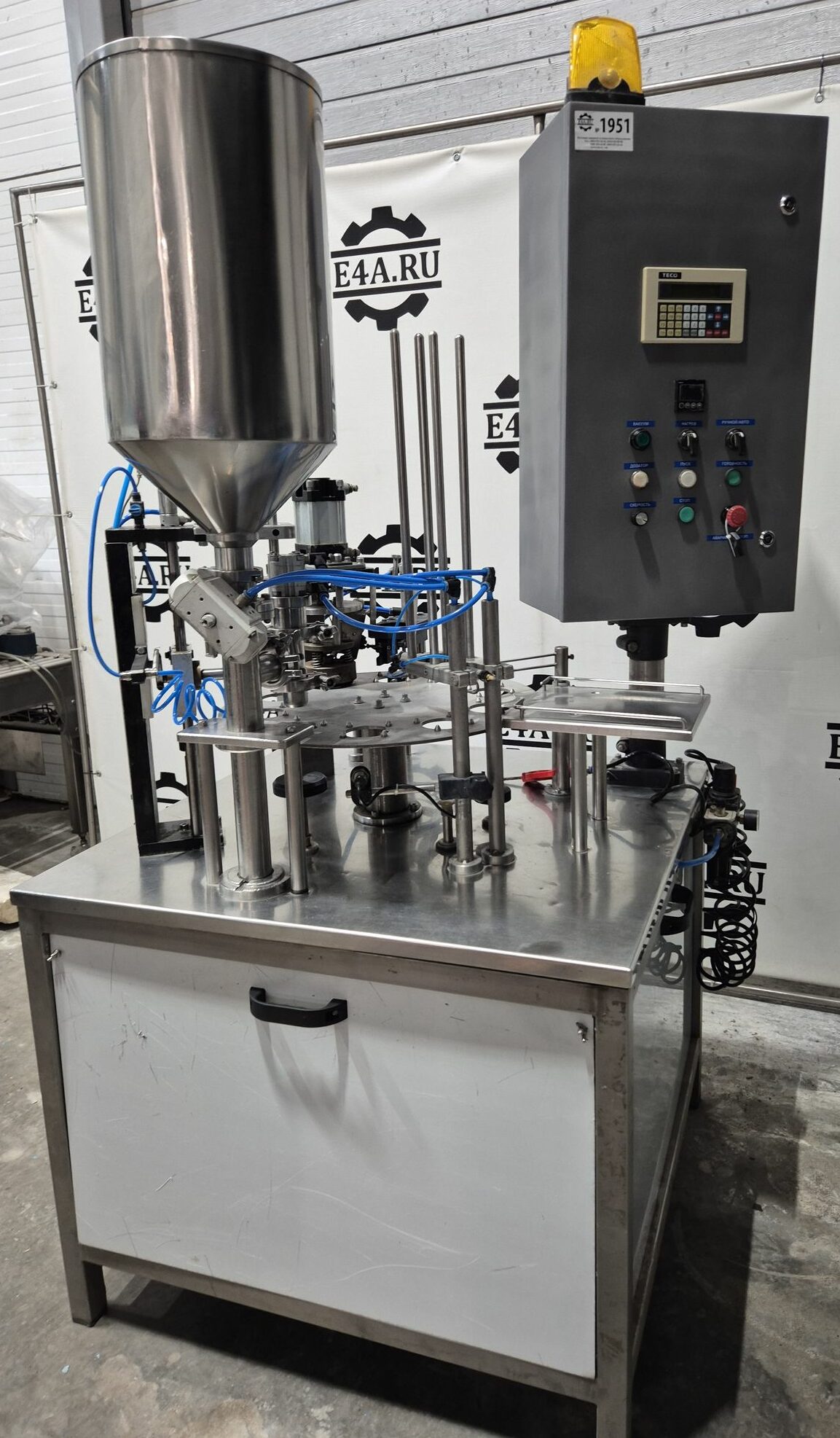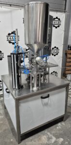 Фасовщик в стаканчики ПАСТПАК Р, предназначен для дозированной фасовки в стакан жидких и пастообразных продуктов с последующей запайкой фольгой.