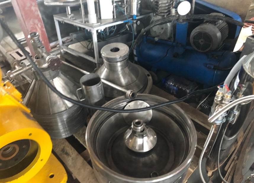 Сепаратор-сливкоотделитель Ж5-ОС2-НС с центробежной автоматической периодической выгрузкой осадка. Предназначен для непрерывного разделения цельного молока на сливки и обезжиренное молоко (обрат) с одновременной очисткой их от загрязнений. Технические характеристики: