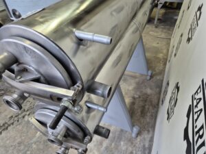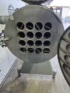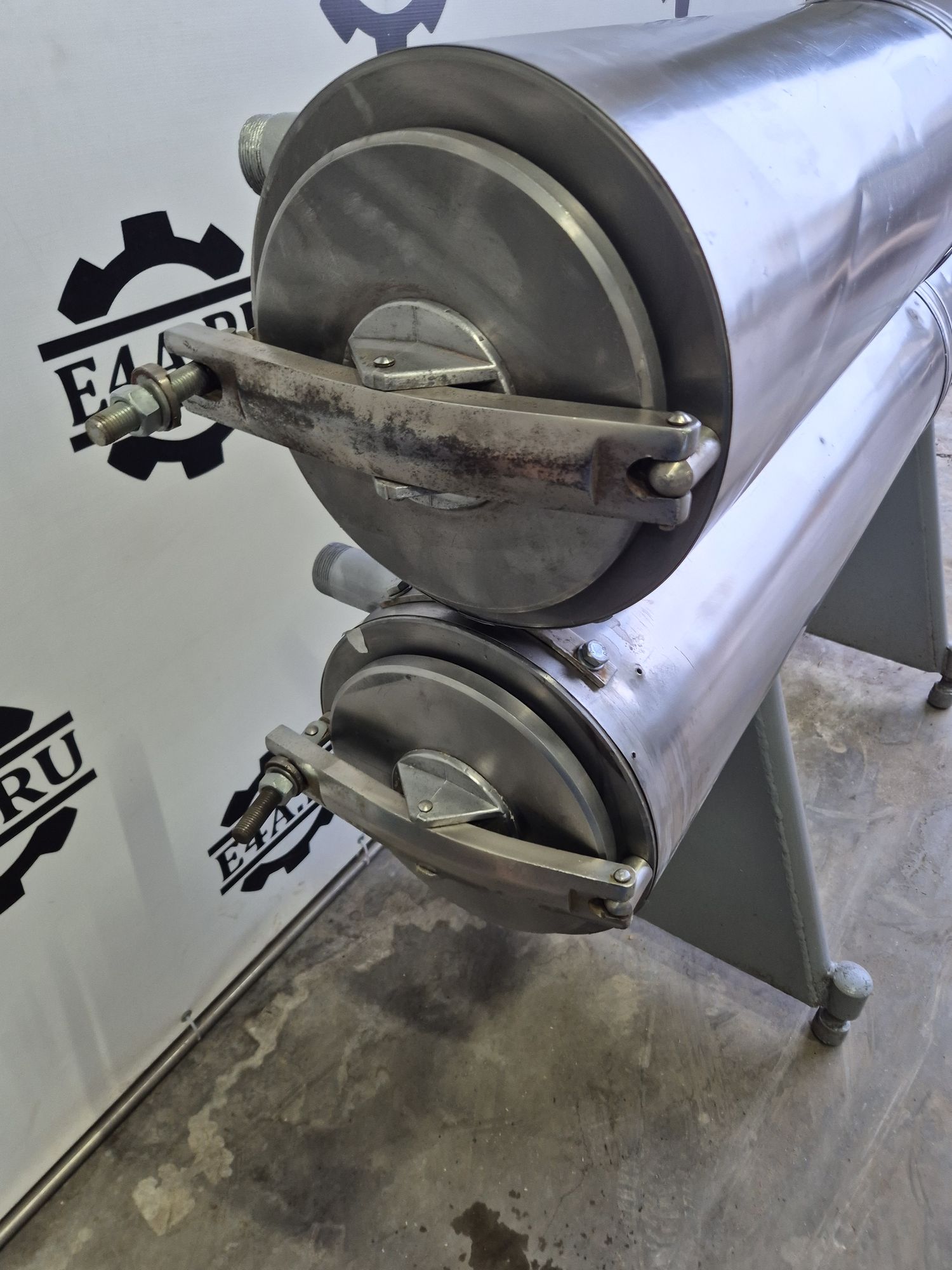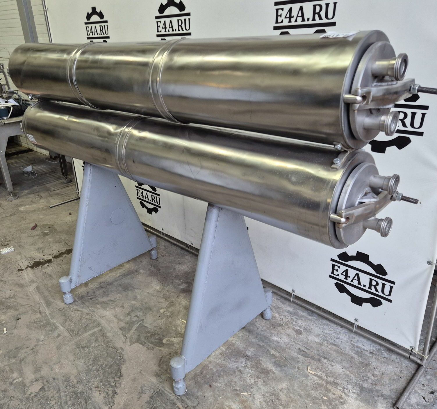 Теплообменник трубчатый, площадь теплообмена 6-6,2 кв.м. (средняя по молоку, производительность зависит от исходной и требуемой температуры, температур и потока теплоносителя, специфики продукта и тд), секция от двух секционного. инв 4197, инв 4198
