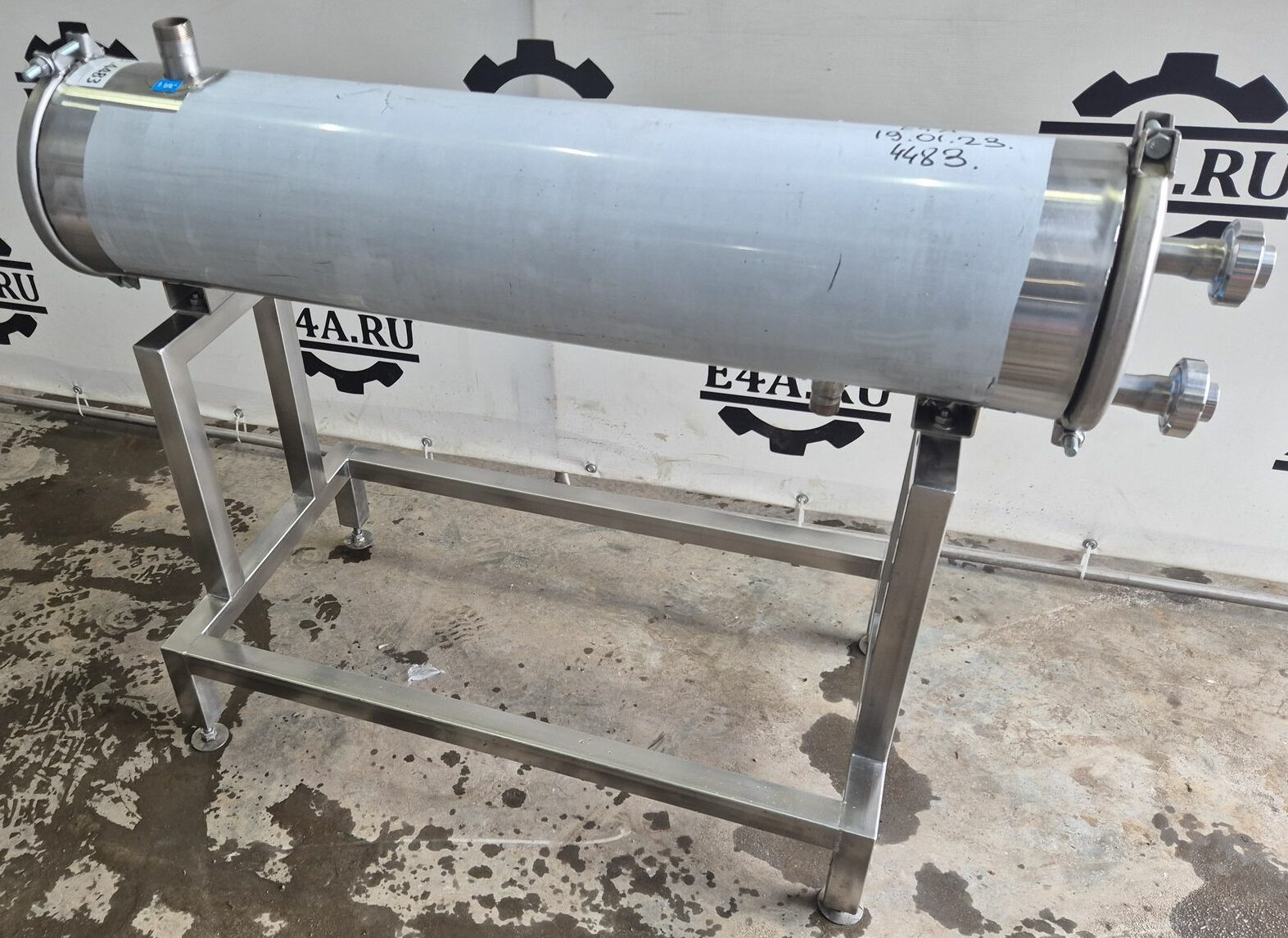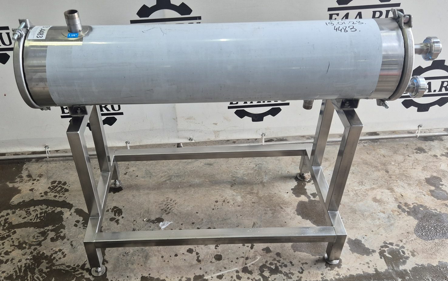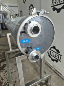 Теплообменник трубчатый, производительность 2500л/час (средняя по молоку, производительность зависит от исходной и требуемой температуры, температур и потока теплоносителя, специфики продукта и тд), секция от двух секционного. Площадь теплообмена 2 — 2,25 кв.м.