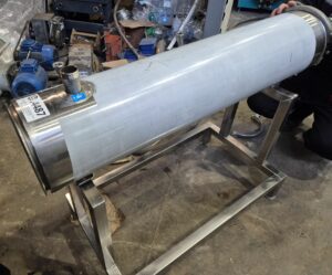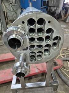Теплообменник трубчатый, производительность 2500л/час (средняя по молоку, производительность зависит от исходной и требуемой температуры, температур и потока теплоносителя, специфики продукта и тд), секция от двух секционного. Площадь теплообмена 2 — 2,25 кв.м.