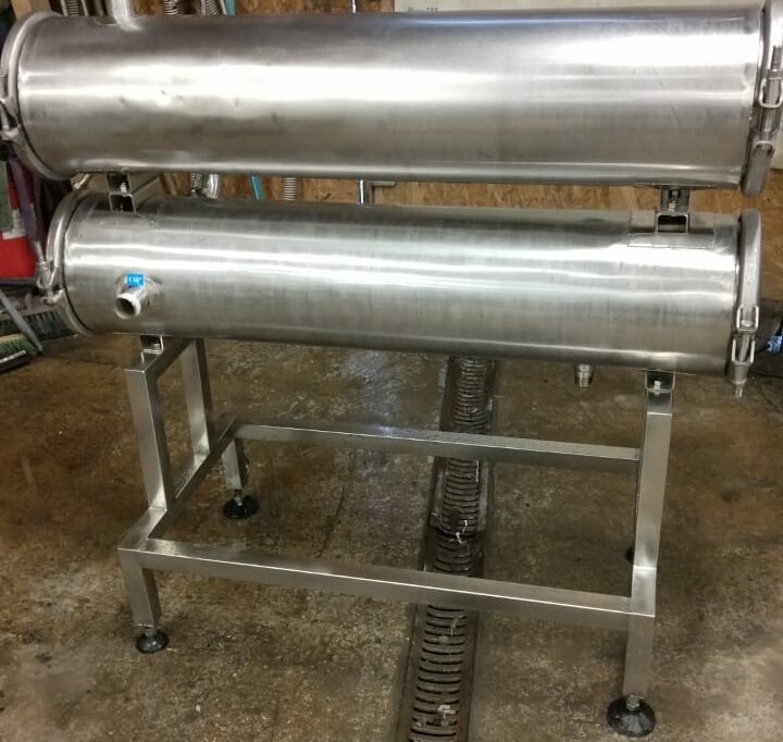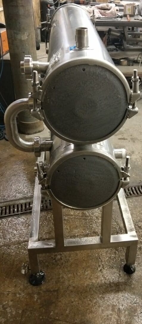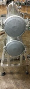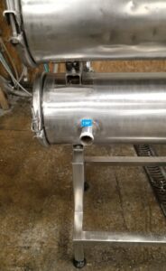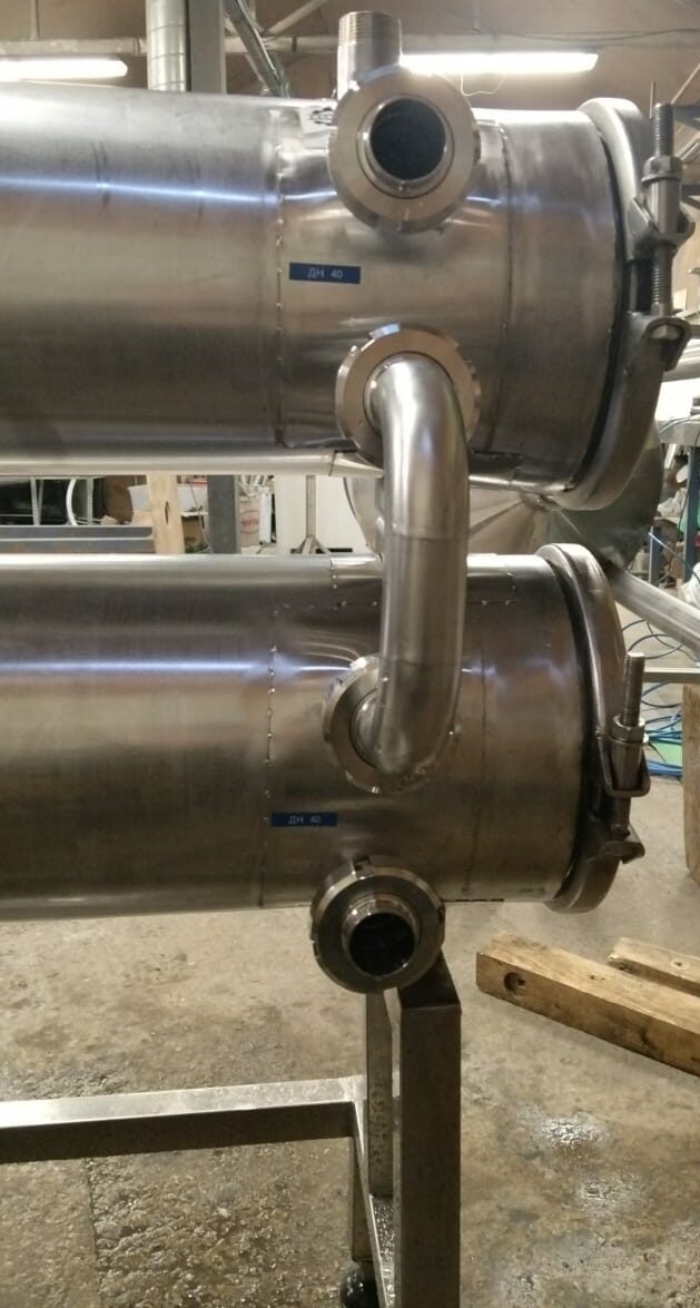 Теплообменник трубчатый, производительность 5000 л/час (средняя по молоку, производительность зависит от исходной и требуемой температуры, температур и потока теплоносителя, специфики продукта и тд), секция от двух секционного. Площадь теплообмена 4-4,5 кв.м. Инв 3827.