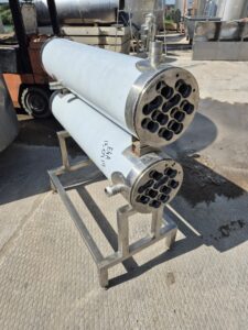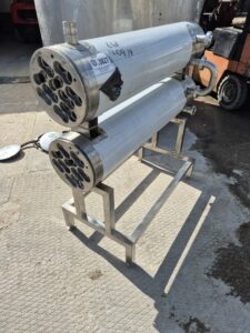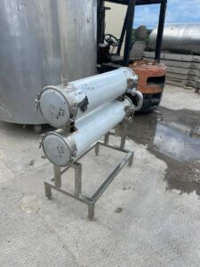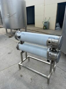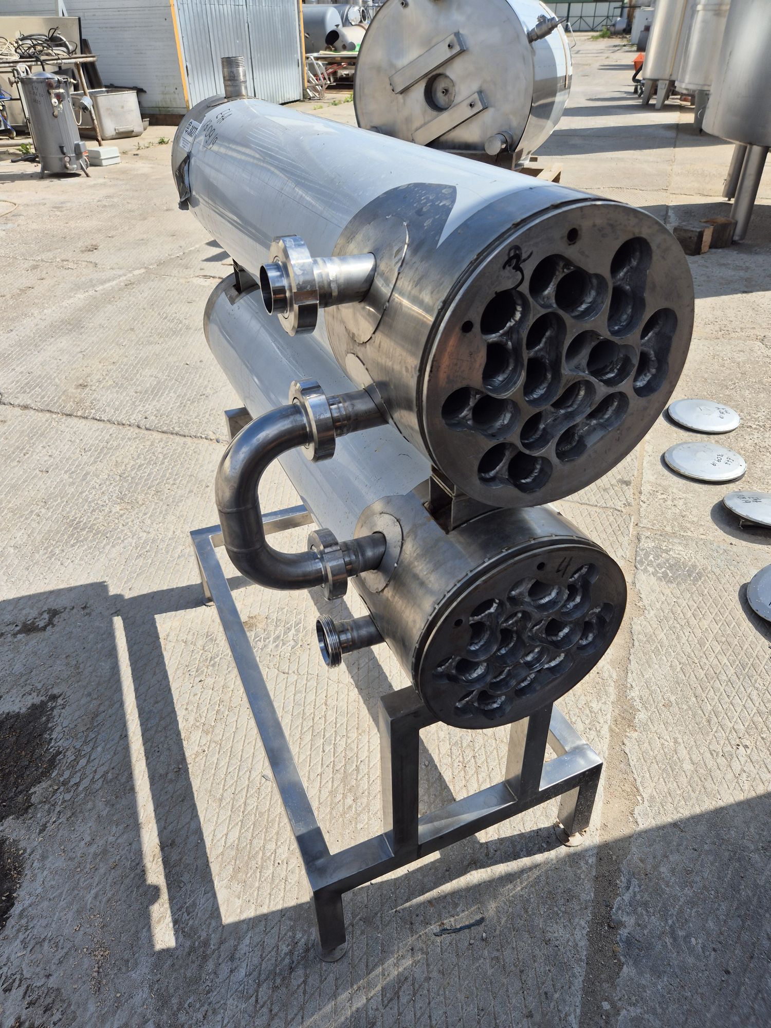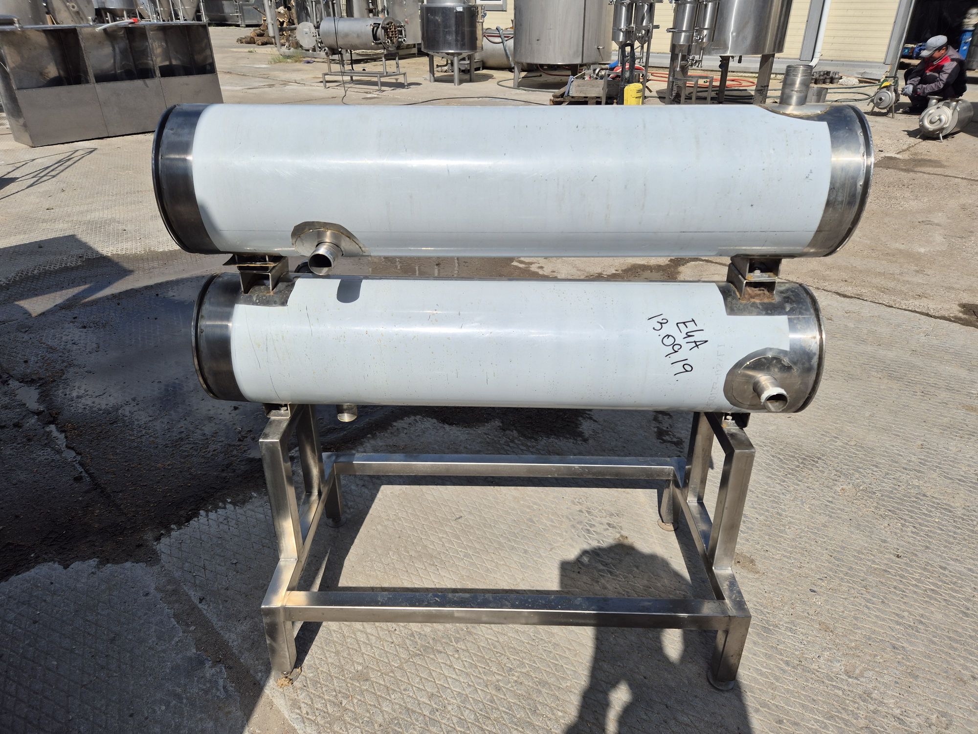 Теплообменник трубчатый, производительность 5000л/час (при пастеризации молока, по другим продуктам производительность может быть разная), двух секционный. Предназначен для пастеризации сливок, молока, термической обработке пищевых продуктов. Площадь теплообмена одной секции ~ 2-2,25кв.м.