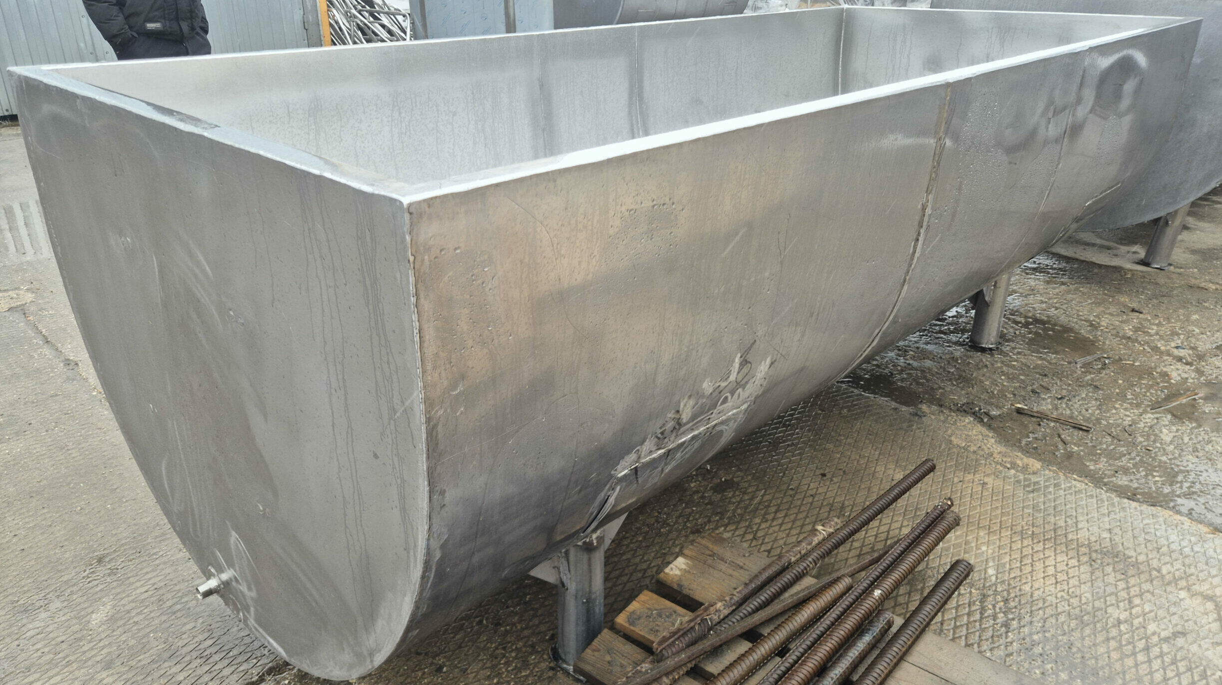 Главная > > > Молочное оборудование > > > производство творога (ванны, охладители, вальцовки, глазированные сырки...) > > > Ванна творожная нержавеющая ВТН, объем 2,5 куб.м, с рубашкой, инв 4545