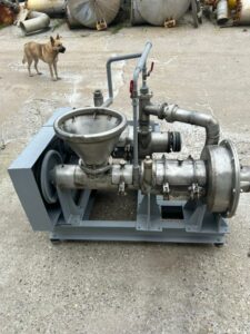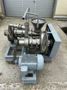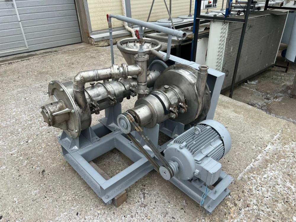 Установка по восстановлению сухого молока Я16-ОПЖ. Предназначена для растворения сухих пищевых компонентов (белок, крахмал, сухие молочные продукты, сахар, соль, и т.п.). Область применения: предприятия молочной и пищевой промышленности, а также отрасли народного хозяйства, где обрабатываются гетерогенные системы с жидкой сплошной фазой. Производительность до 16 000 литров в час. Инв 13061.