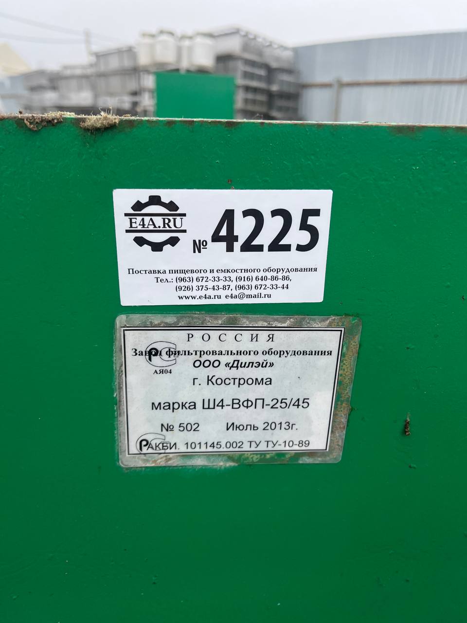 Главная > > > Оборудование для алкогольной и безалкогольной промышленности, розлив технических жидкостей > > > фильтра, сепараторы, водоподготовки > > > Фильтр-пресс Ш4-ВФП-25/45, пластины 60х60, инв 4225