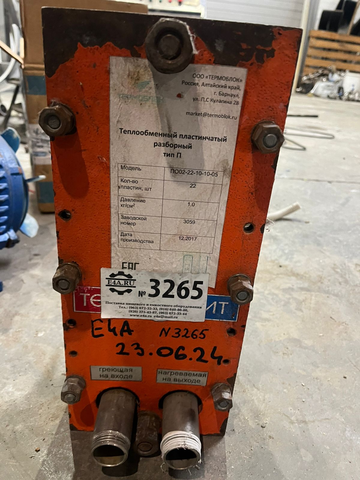 Главная > > > Теплообменники > > > пластинчатые > > > Теплообменник пластинчатый П002-22-10-10-05, инв 3265