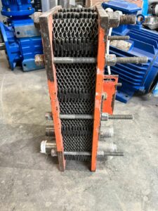 Теплообменник пластинчатый П002-22-10-10-05. Площадь теплообмена 0,38 кв.м. Диаметр на входе/выходе — ДУ 25