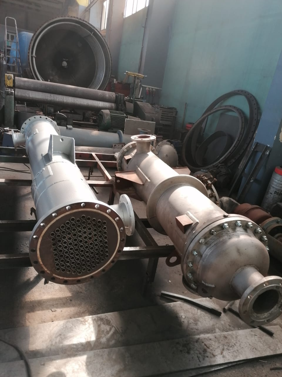 Крышки, корпус, трубки и трубные решётки из нержавеющей стали.