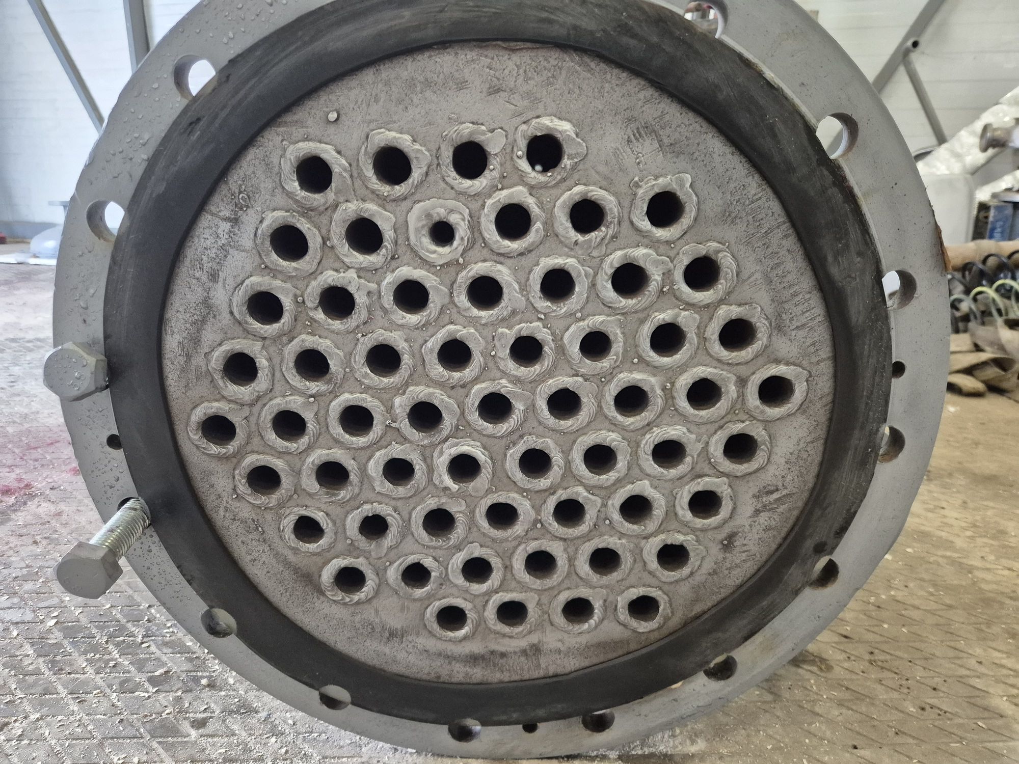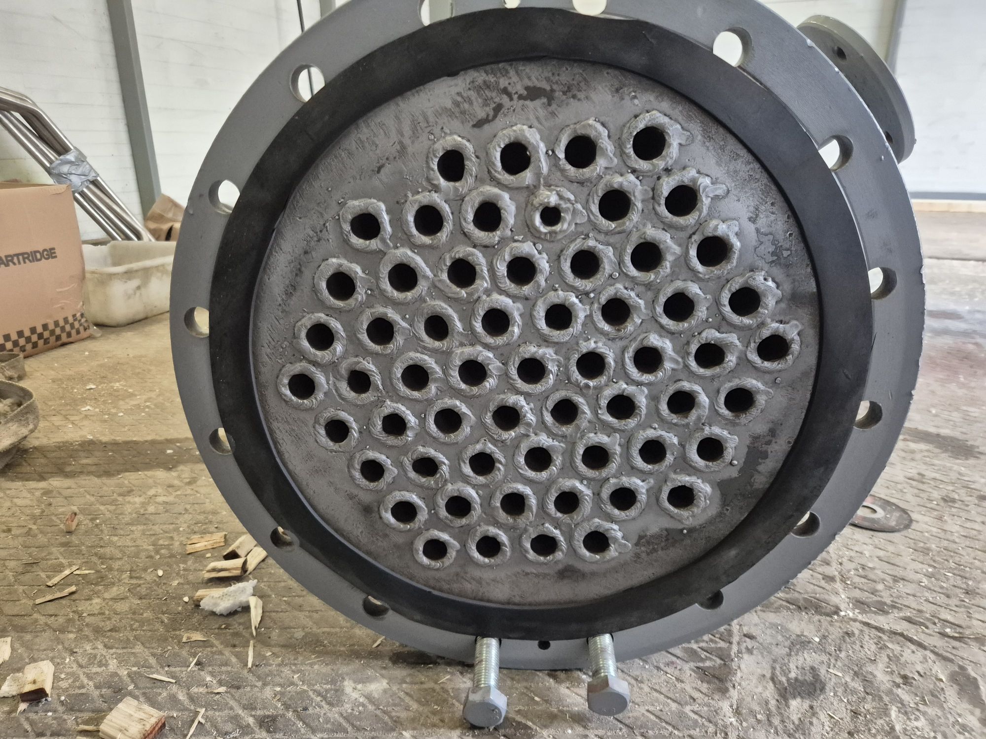 Корпус теплообменника и трубки выполнены из стали.