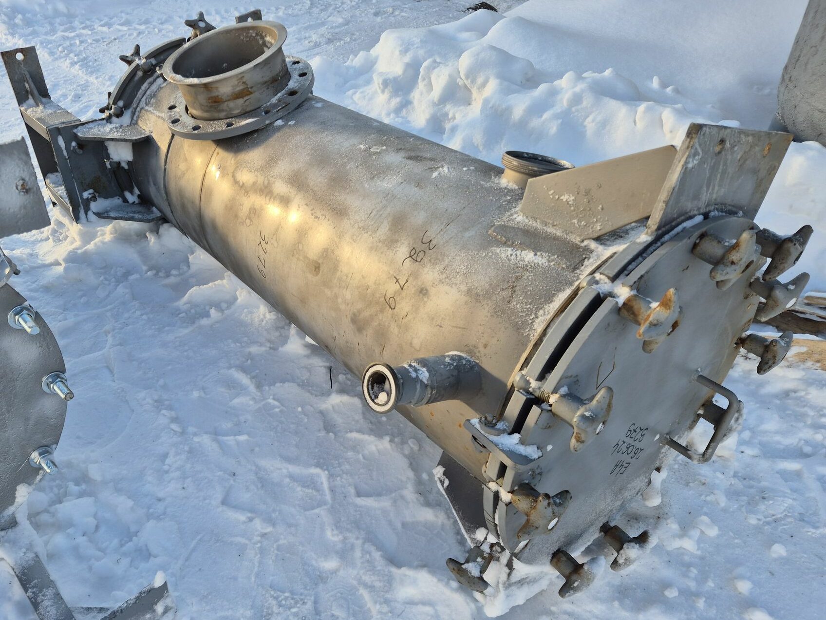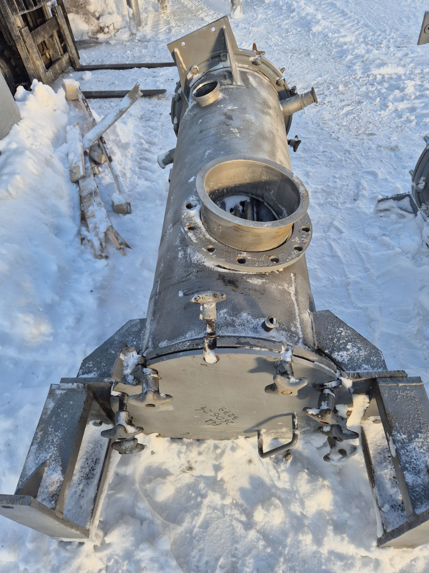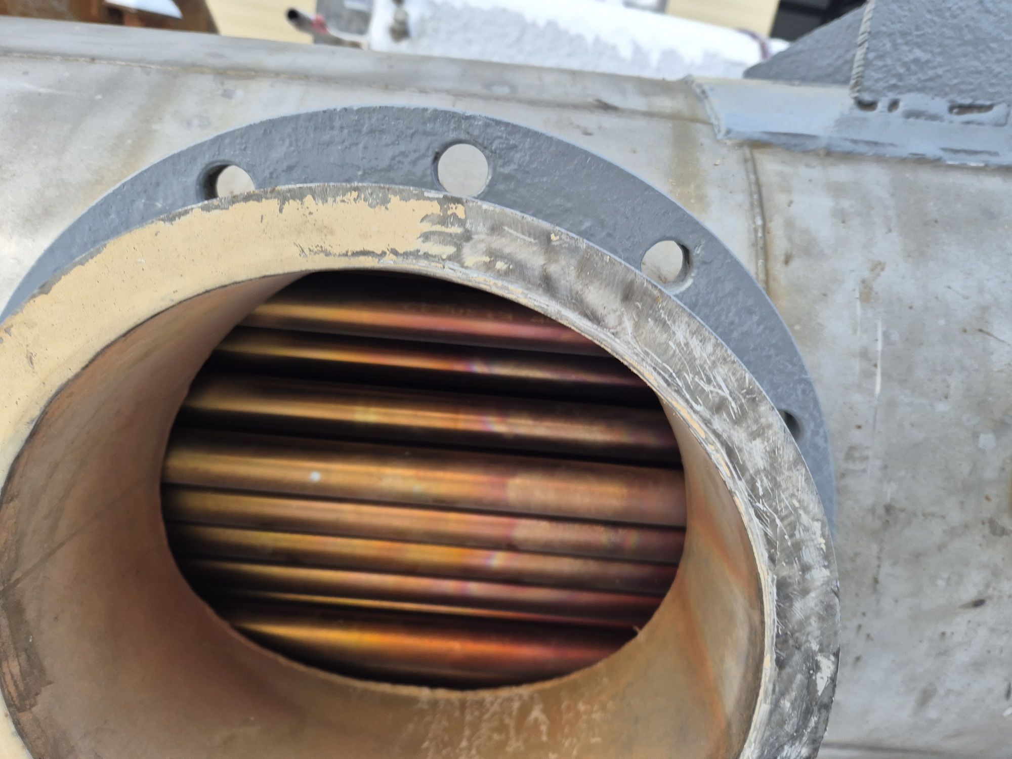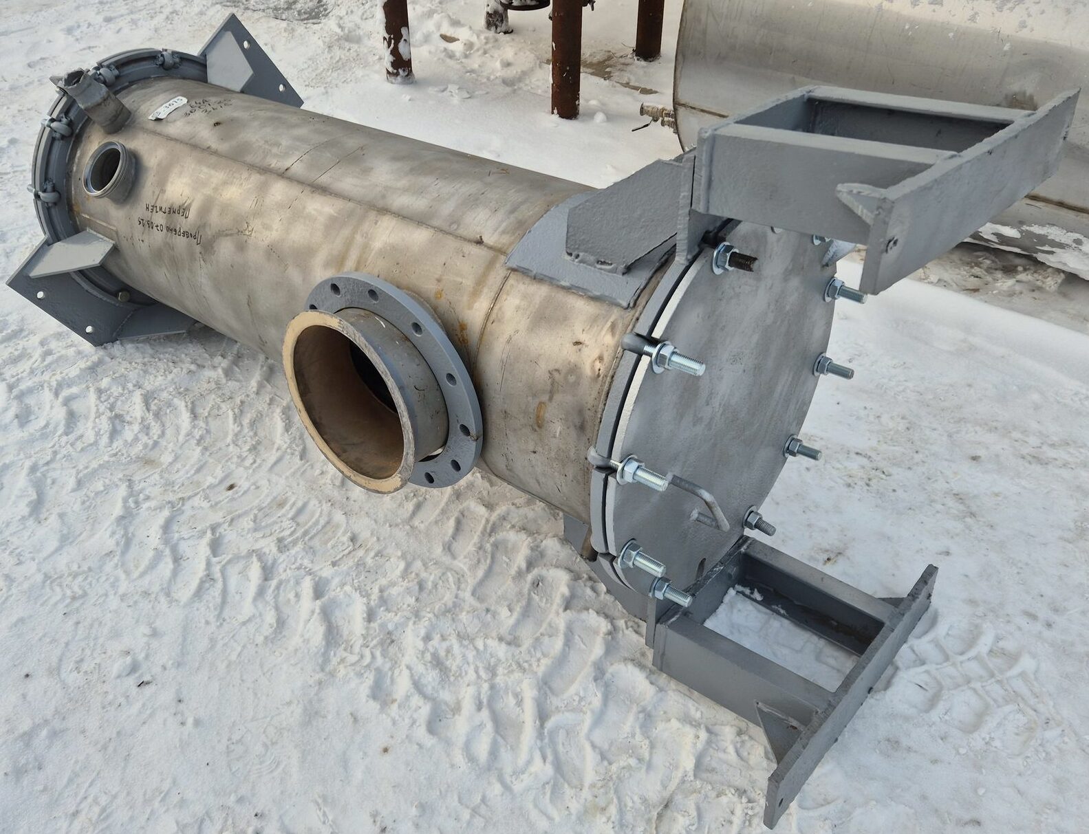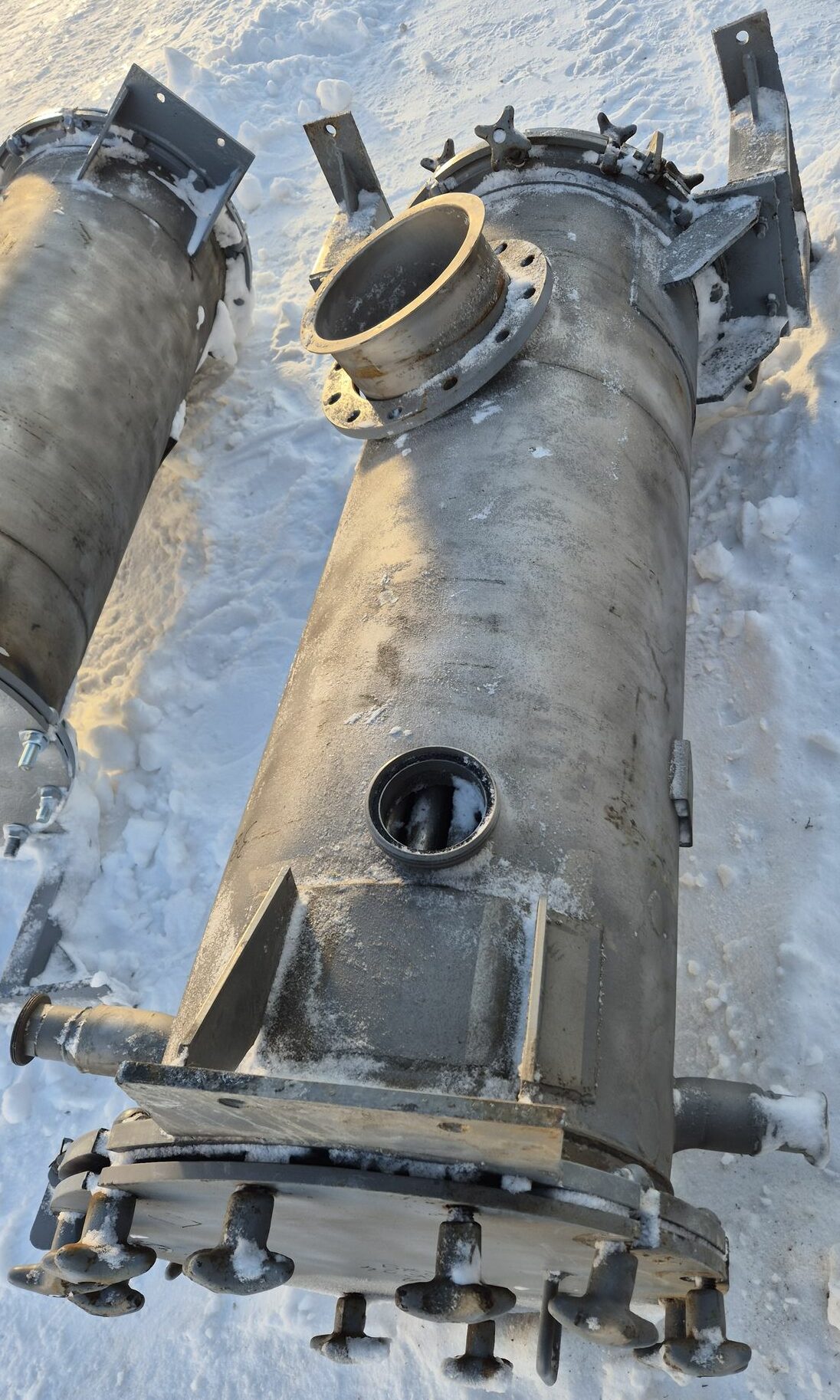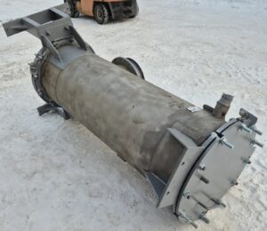 Трубчатые подогреватели от вакуумно-выпарной установки Виганд-8000. Количество трубок – 72 шт Рабочая длина трубок – 1,49 м Диаметр трубок – 28 мм Примерная площадь теплообмена — 9,43 кв.м. В наличии 2 шт. инв 3615, инв 3279